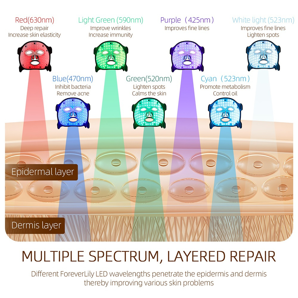 Foreverlily หน้ากากอนามัยไร้สาย 7 Led ลดริ้วรอย ฟื้นฟูผิวหน้า และคอ