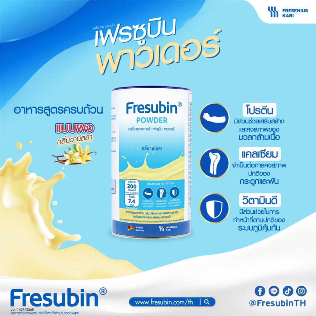 [ใหม่] Fresubin Powder 1 กระป๋อง เฟรซูบิน พาวเดอร์ อาหารสูตรครบถ้วน กลิ่นวานิลลา 500 g. [EXP.05/2026]