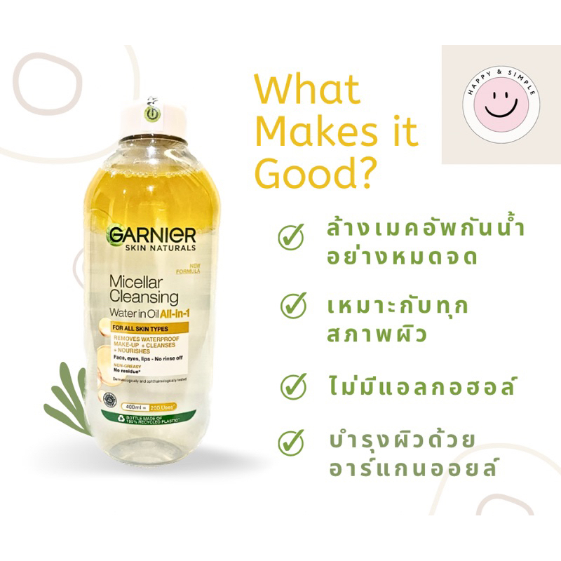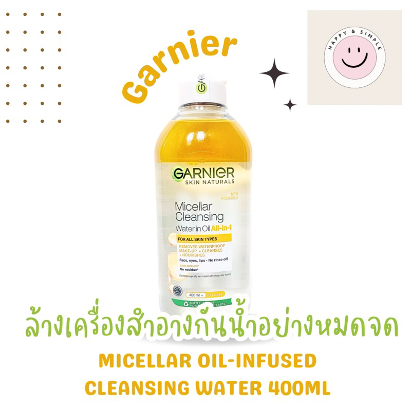 Garnier Micellar Oil-Infused Cleansing Water 400ml การ์นิเย่ ไมเซล่า ออยล์-อินฟิวส์ คลีนซิ่งวอเตอร์