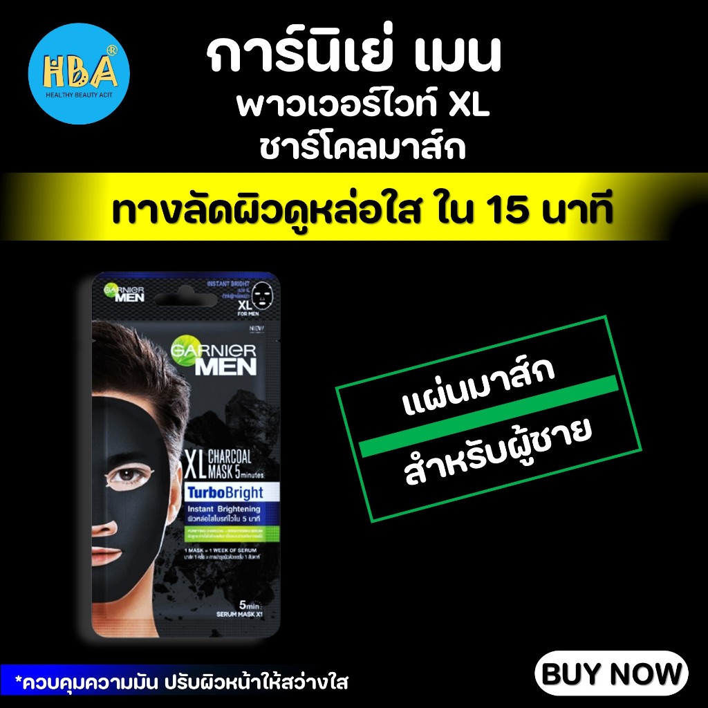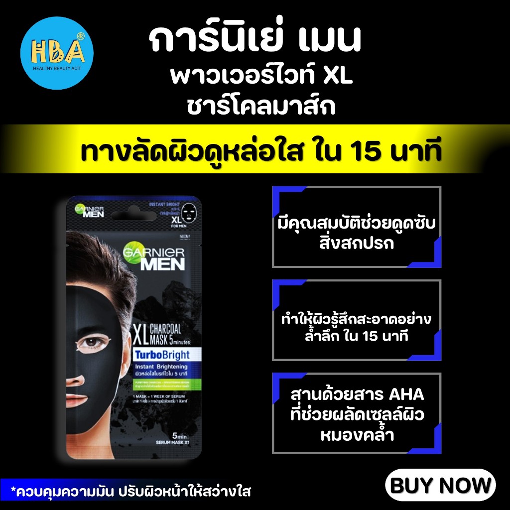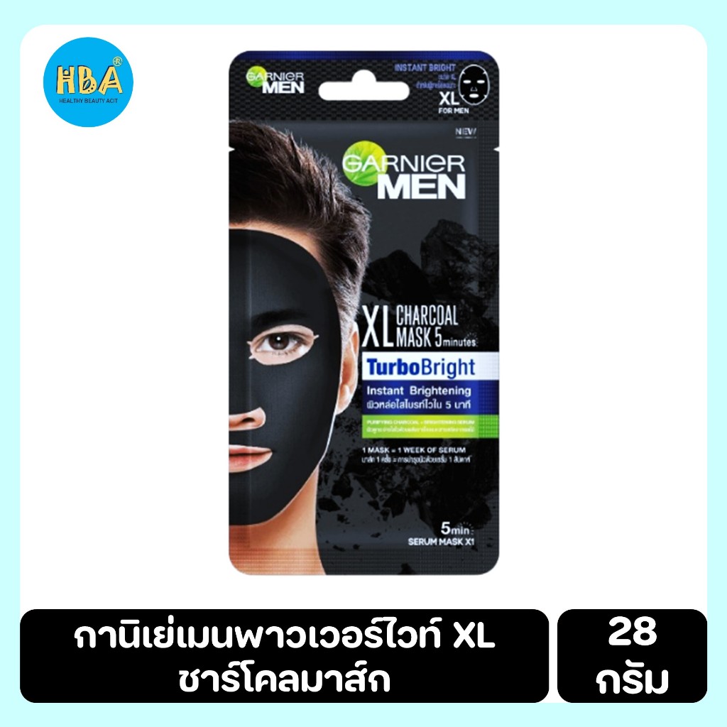 Garnier Men Powerwhite XL Charcoal Mask กานิเย่เมนพาวเวอร์ไวท์ XL ชาร์โคลมาส์ก ขนาด 28 กรัม 6 แผ่น
