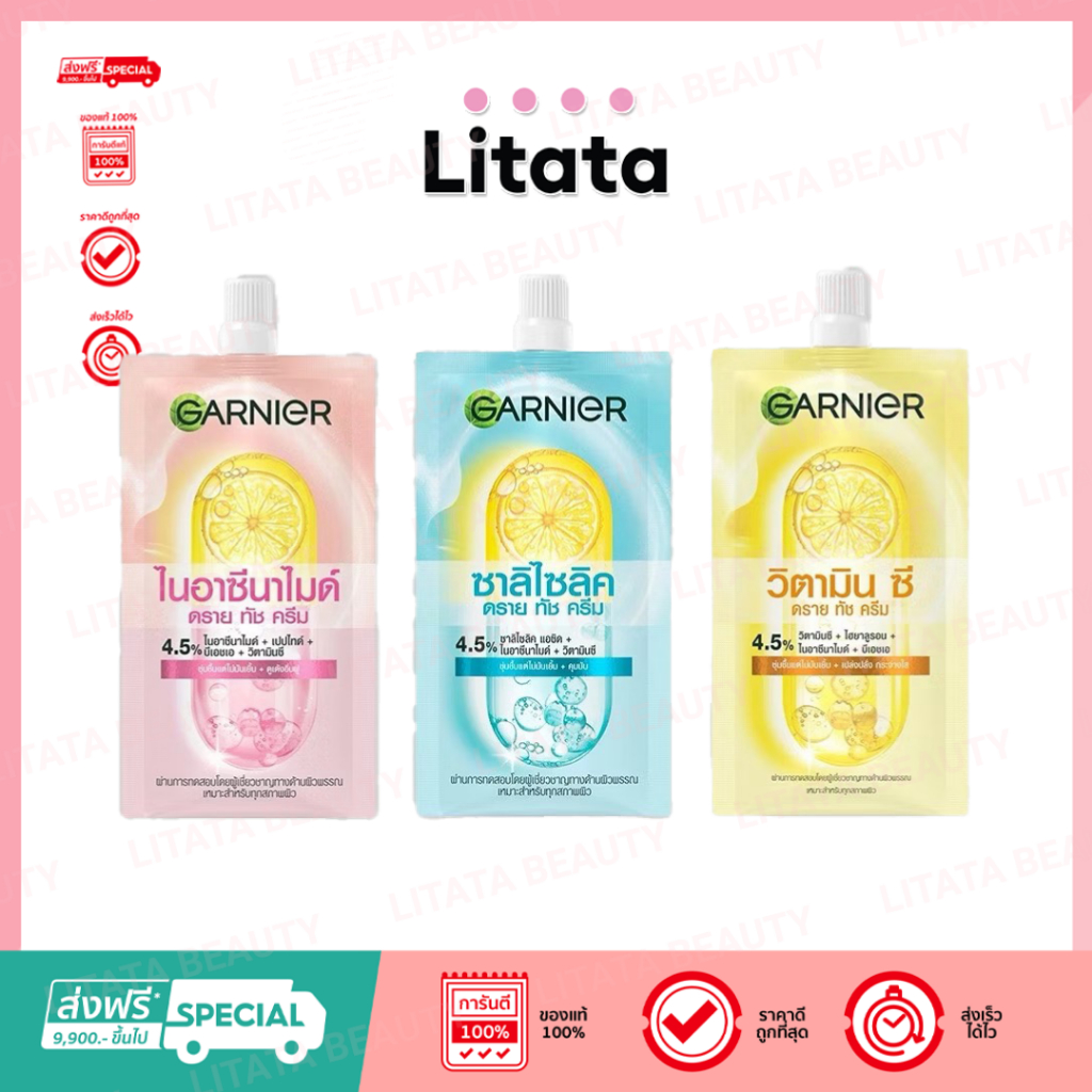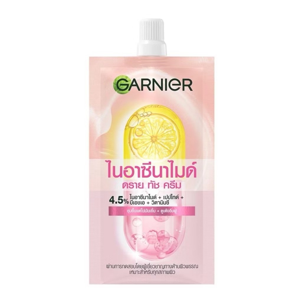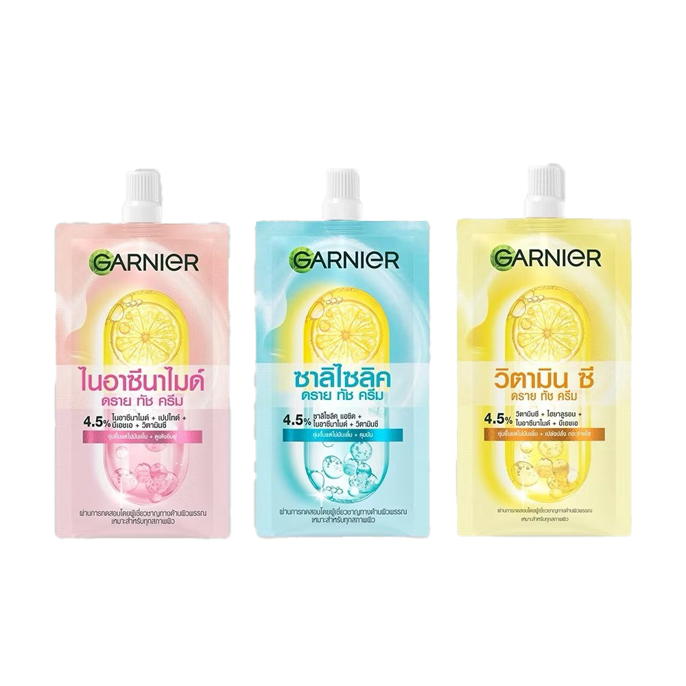 [ซอง] Garnier Dry Touch Cream การ์นิเย่ ดราย ทัช ครีม (วิตามินซี/ไนอาซีนาไมด์/ซาลิไซลิค) 7 ml.