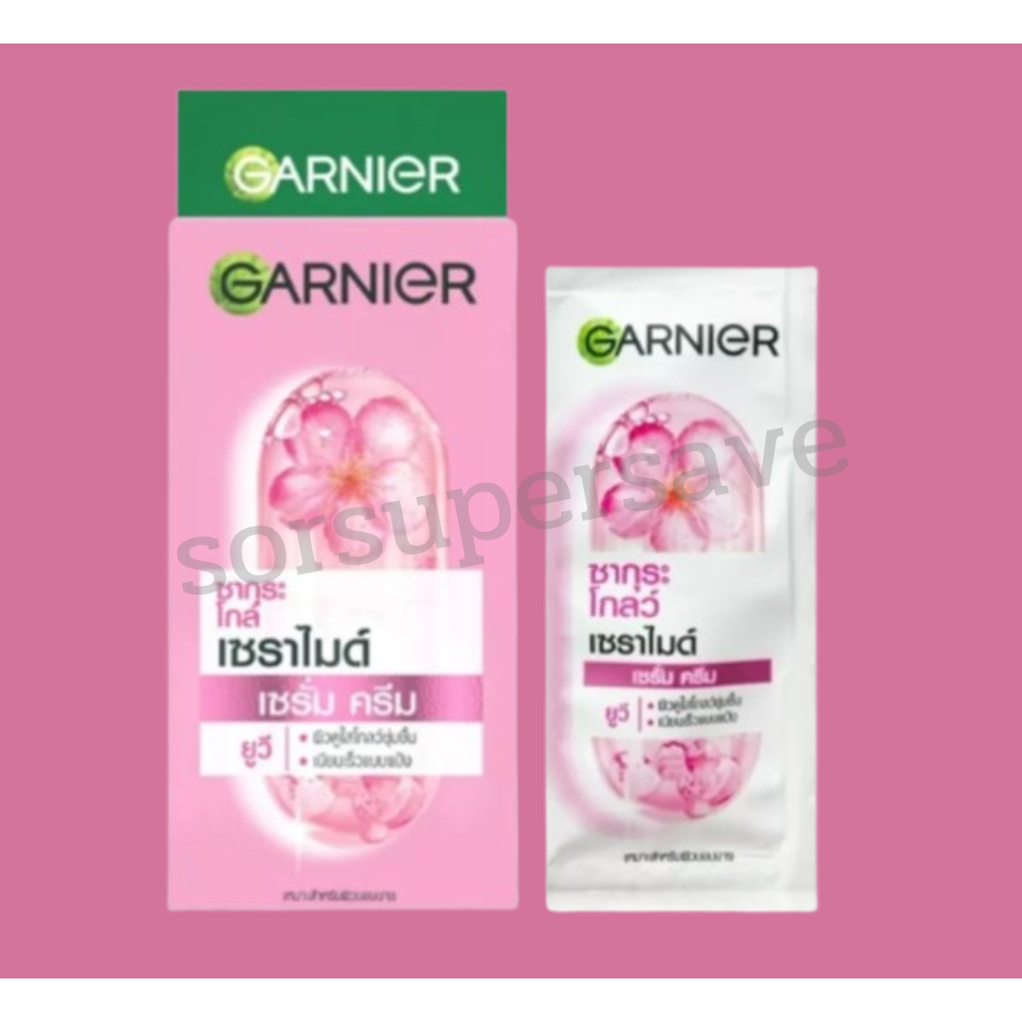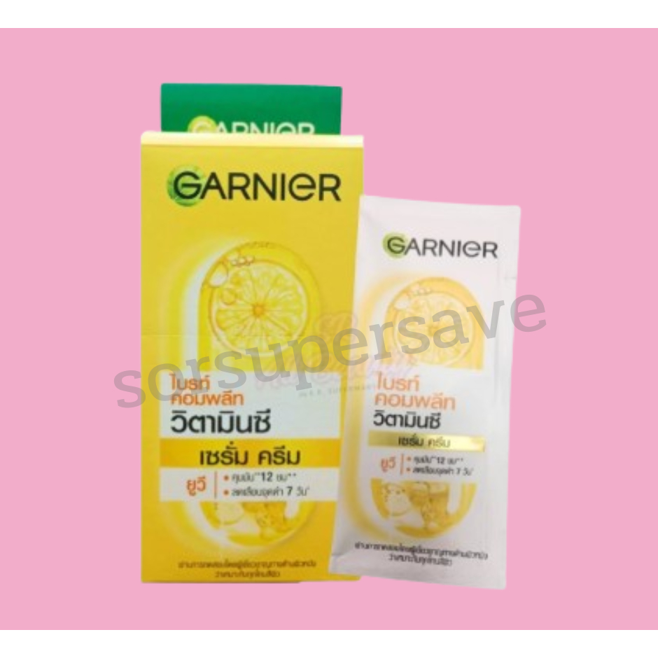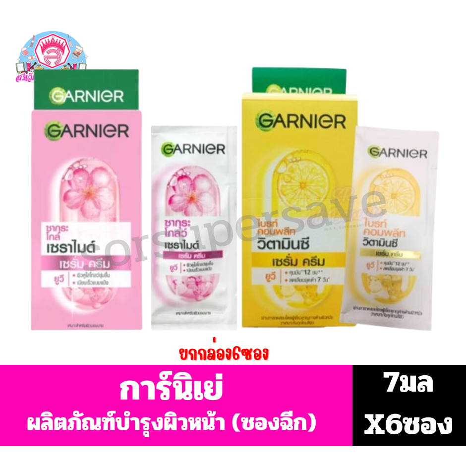 **ยกกล่อง**การ์นิเย่ ผลิตภัณฑ์บำรุงผิวหน้า เซรั่ม ครีม ยูวีUV (ซองฉีก) ขนาด7มลx6ซอง