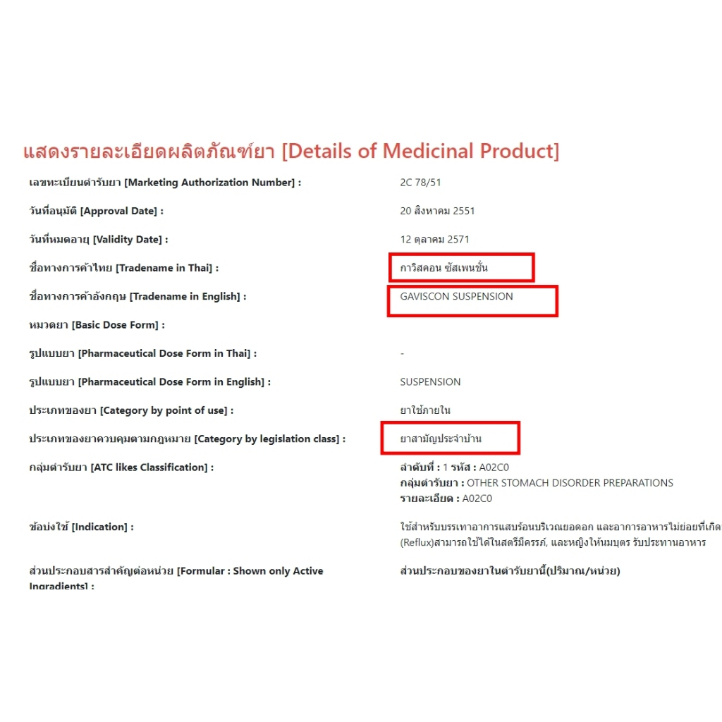 [กล่องละ 12 ซอง] Gaviscon Suspension 10 ml สีฟ้า กาวิสคอน ไม่มีน้ำตาล บรรเทาอาการแสบร้อนกลางอก กรดเกิน กรดไหลย้อน