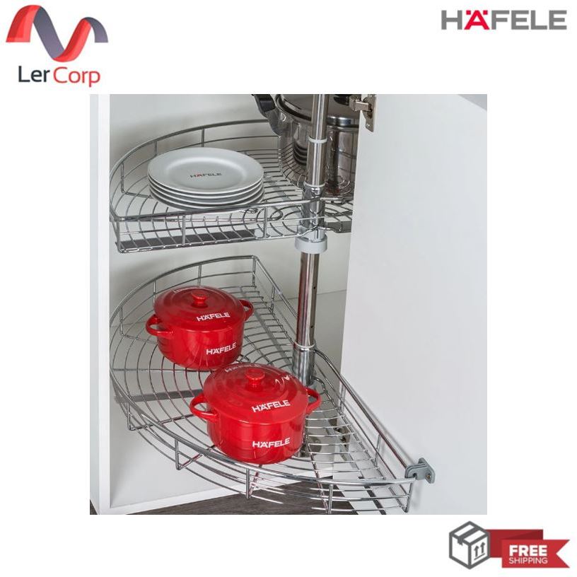 (Hafele) ชุดตะแกรงครึ่งวงกลมเข้ามุม 180° ตะแกรง 2 ชั้น สแตนเลสสตีล 304 สีขัดเงา (495.37.032)