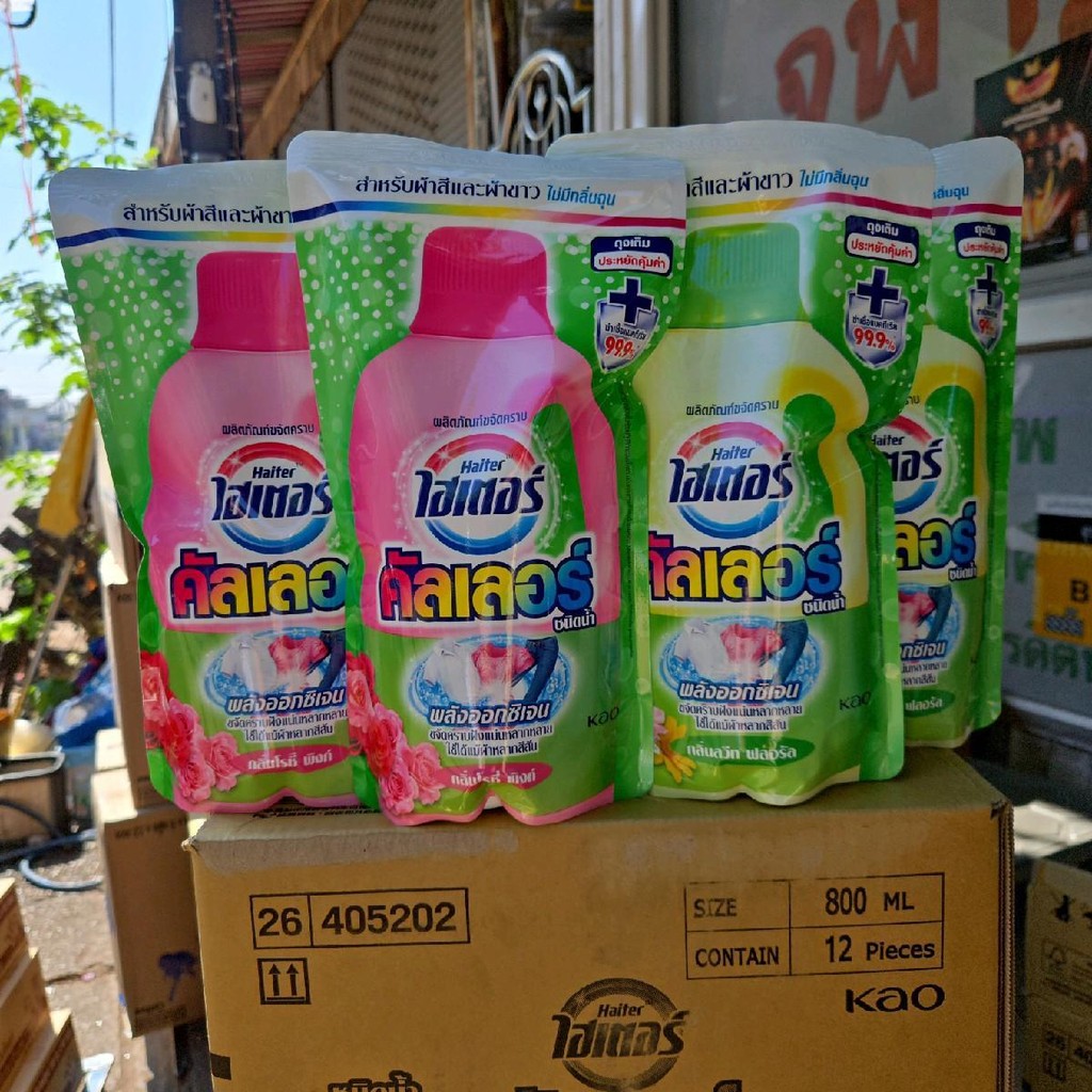 ไฮเตอร์ คัลเลอร์ ชนิดน้ำขนาด 800 มล [ยกลัง]*12 ถุง ผลิตภัณฑ์ขจัดคราบชนิดน้ำสำหรับผ้าสีและผ้าขาว มี 2 สีให้เลือก