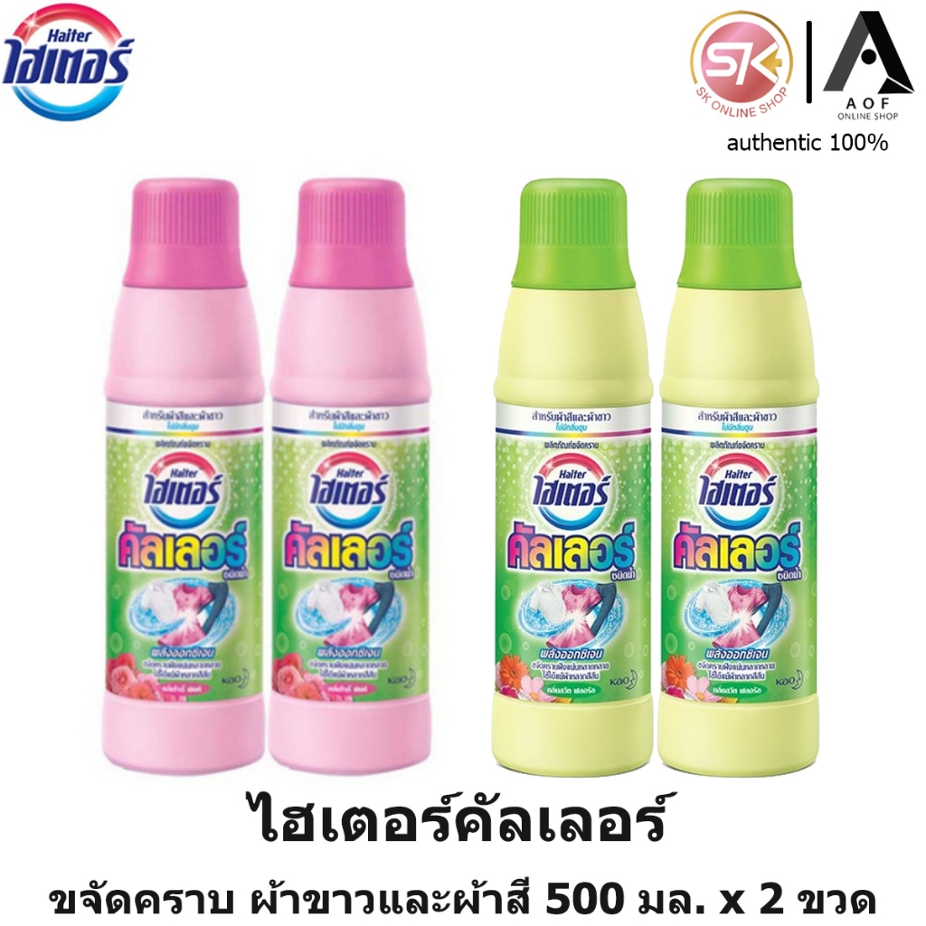 [2ขวด] Haiter ไฮเตอร์ คัลเลอร์ ผลิตภัณฑ์ขจัดคราบ ผ้าสีและผ้าขาว ชนิดน้ำ 500 มล. x 2 ขวด