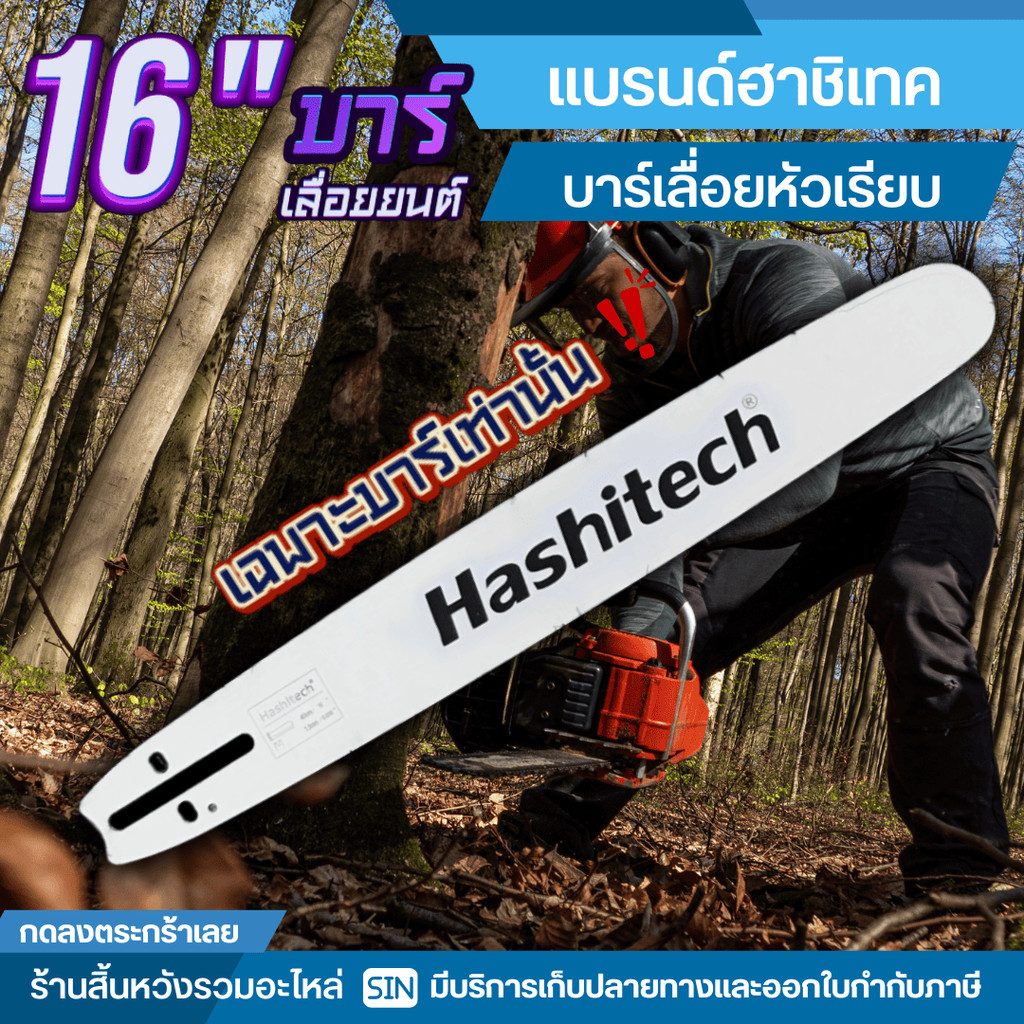 บาร์เลื่อยยนต์ เฉพาะบาร์ ขนาด 16 นิ้ว หัวเรียบ ตรา Hashitech