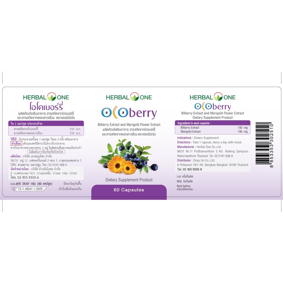 Herbal One Ocoberry เฮอร์บัล วัน อ้วยอันโอสถ โอโคเบอร์รี่ 60 แคปซูล[dkp]
