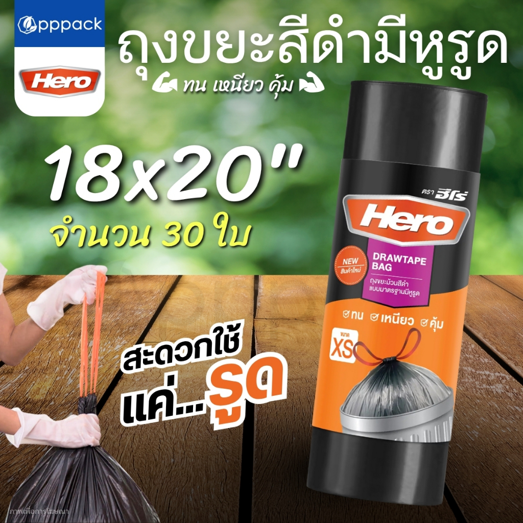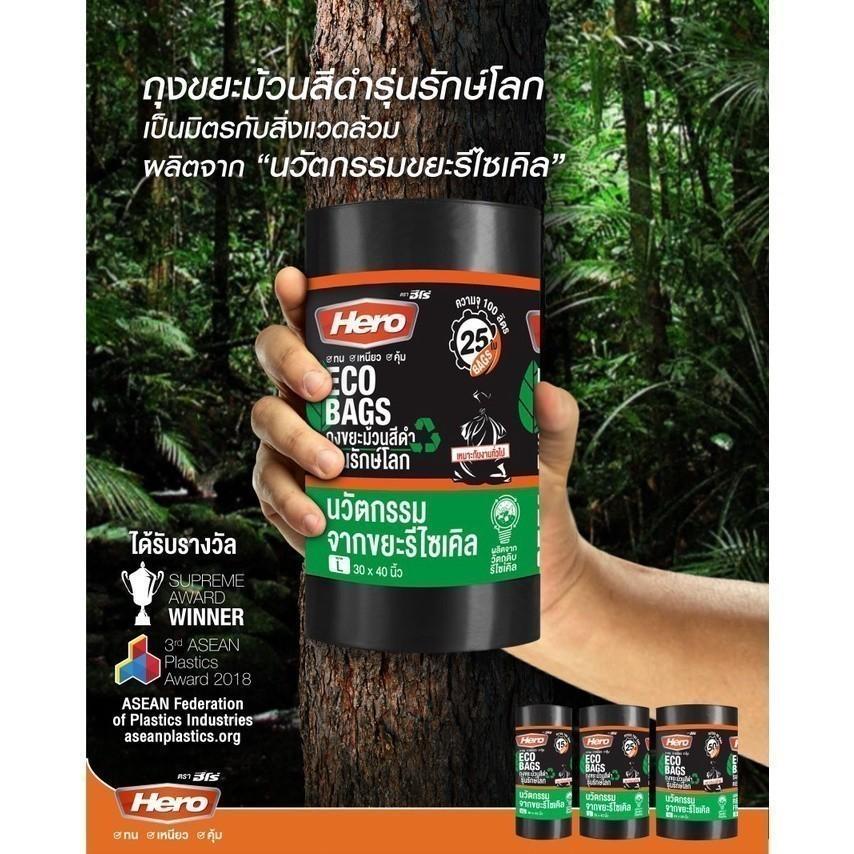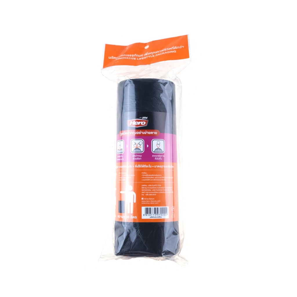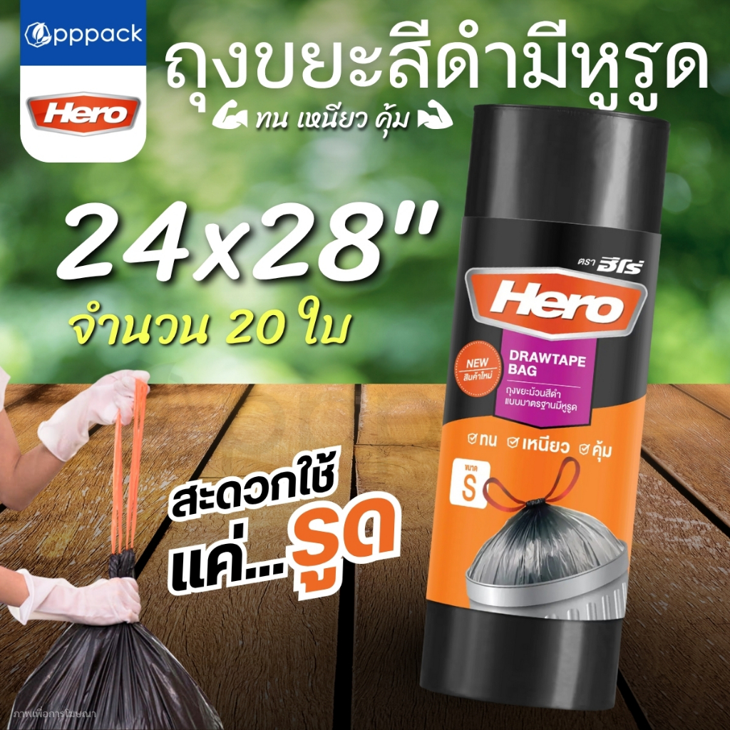 HERO ถุงขยะม้วนแบบหูรูด ขนาด 24×28 นิ้ว สีดำ (20 ใบ) |ZWG|