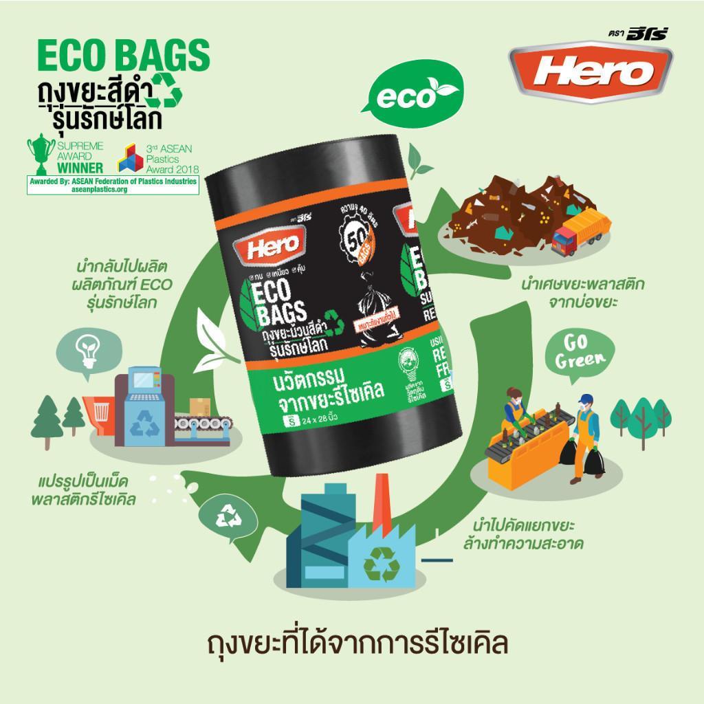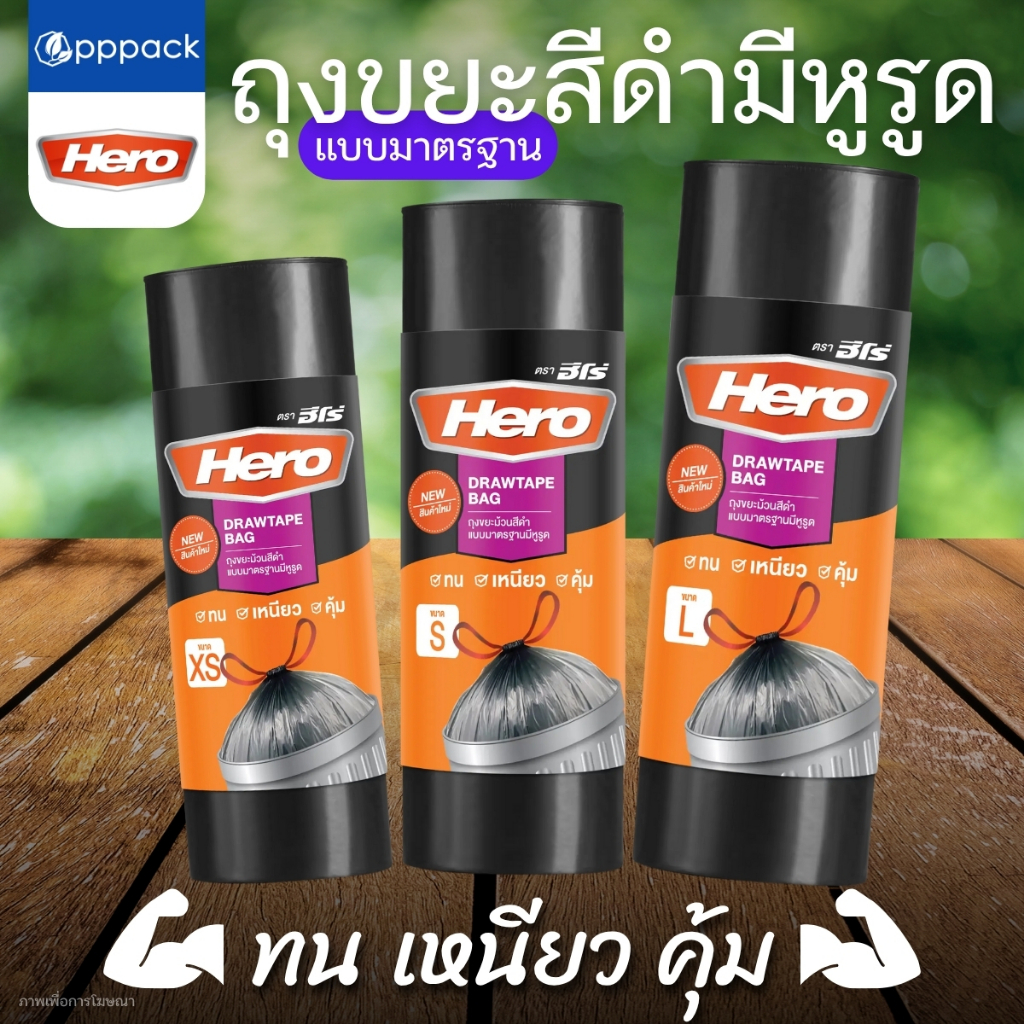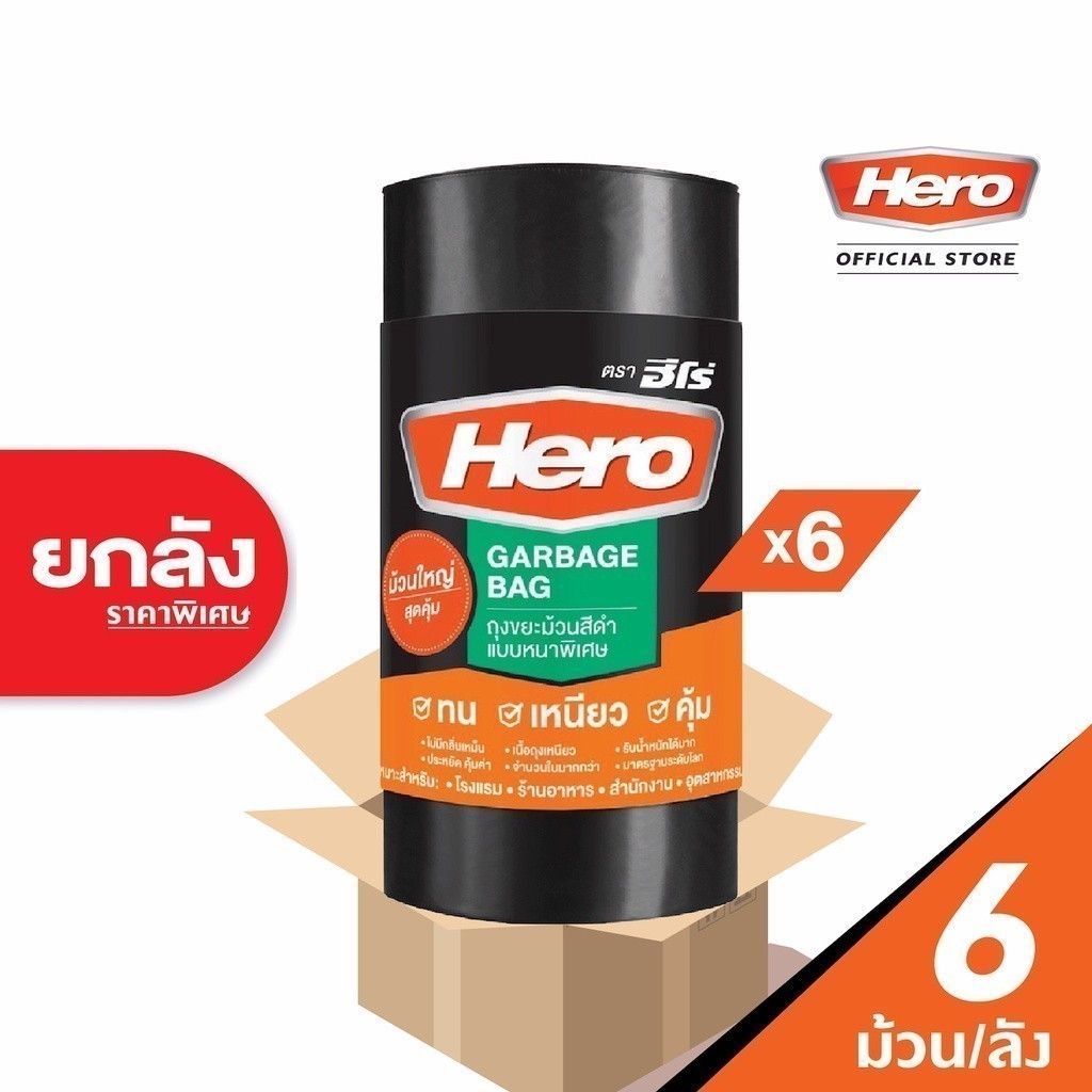 HERO ถุงขยะม้วนแบบหูรูด ขนาด 24×28 นิ้ว สีดำ (20 ใบ) |ZWG|