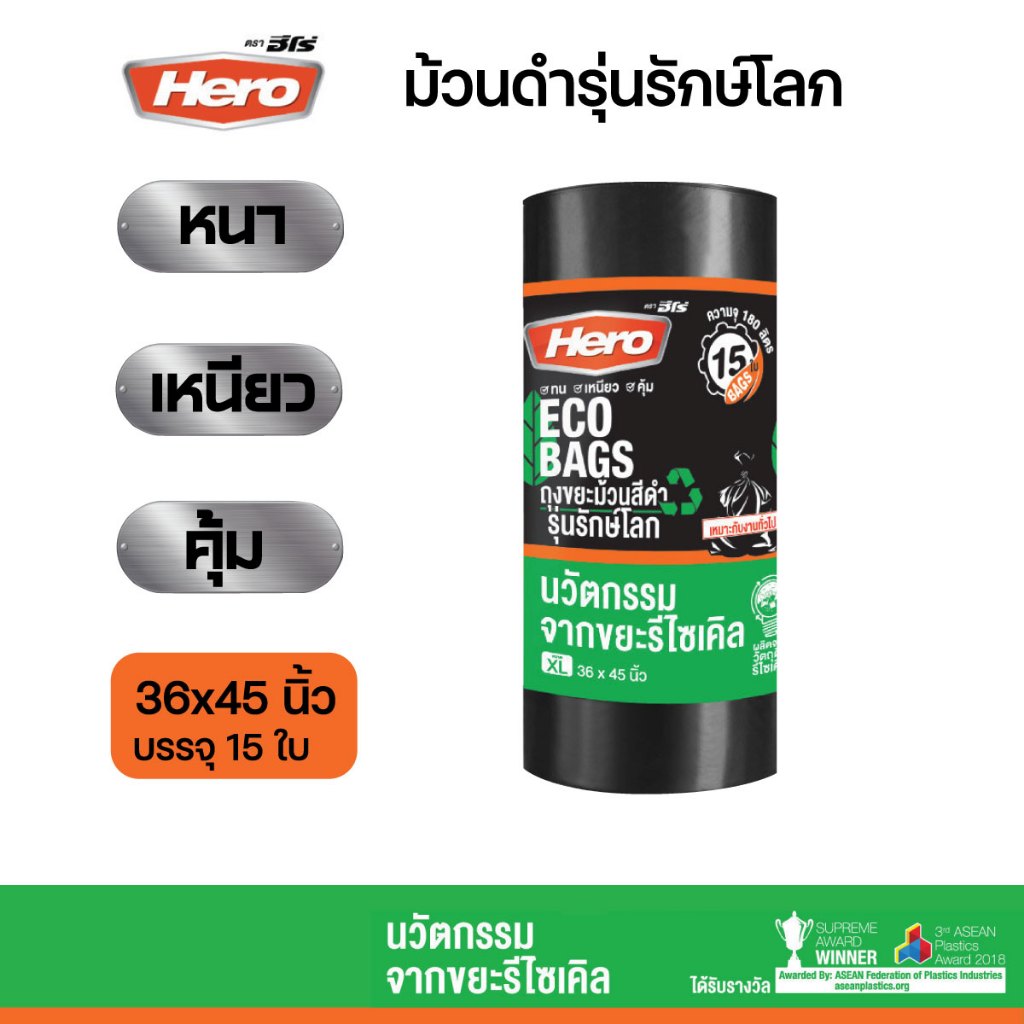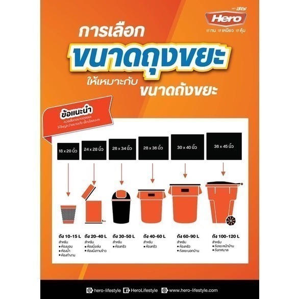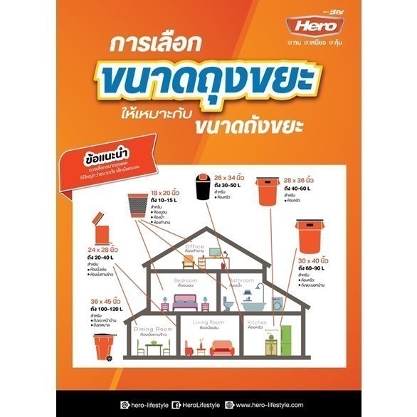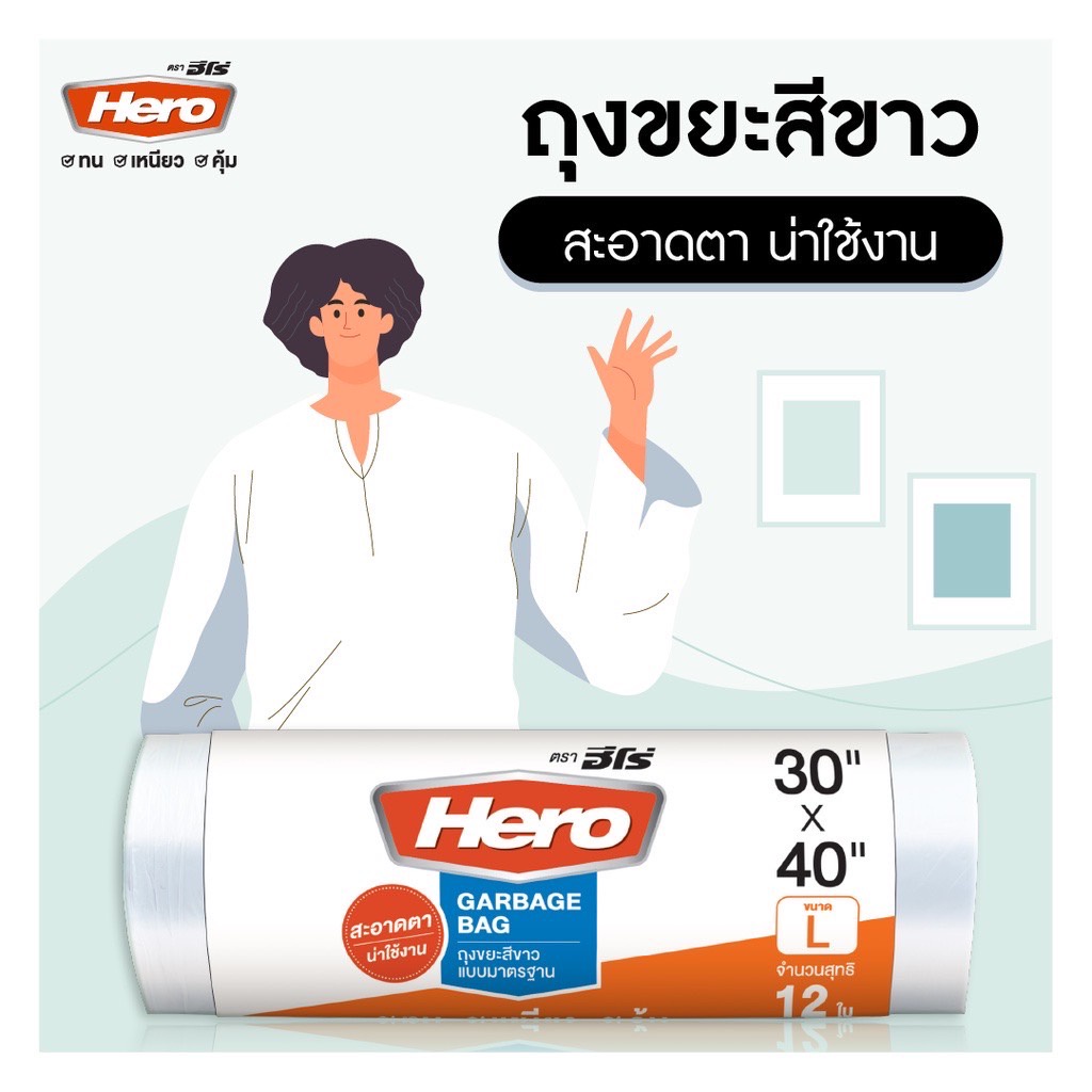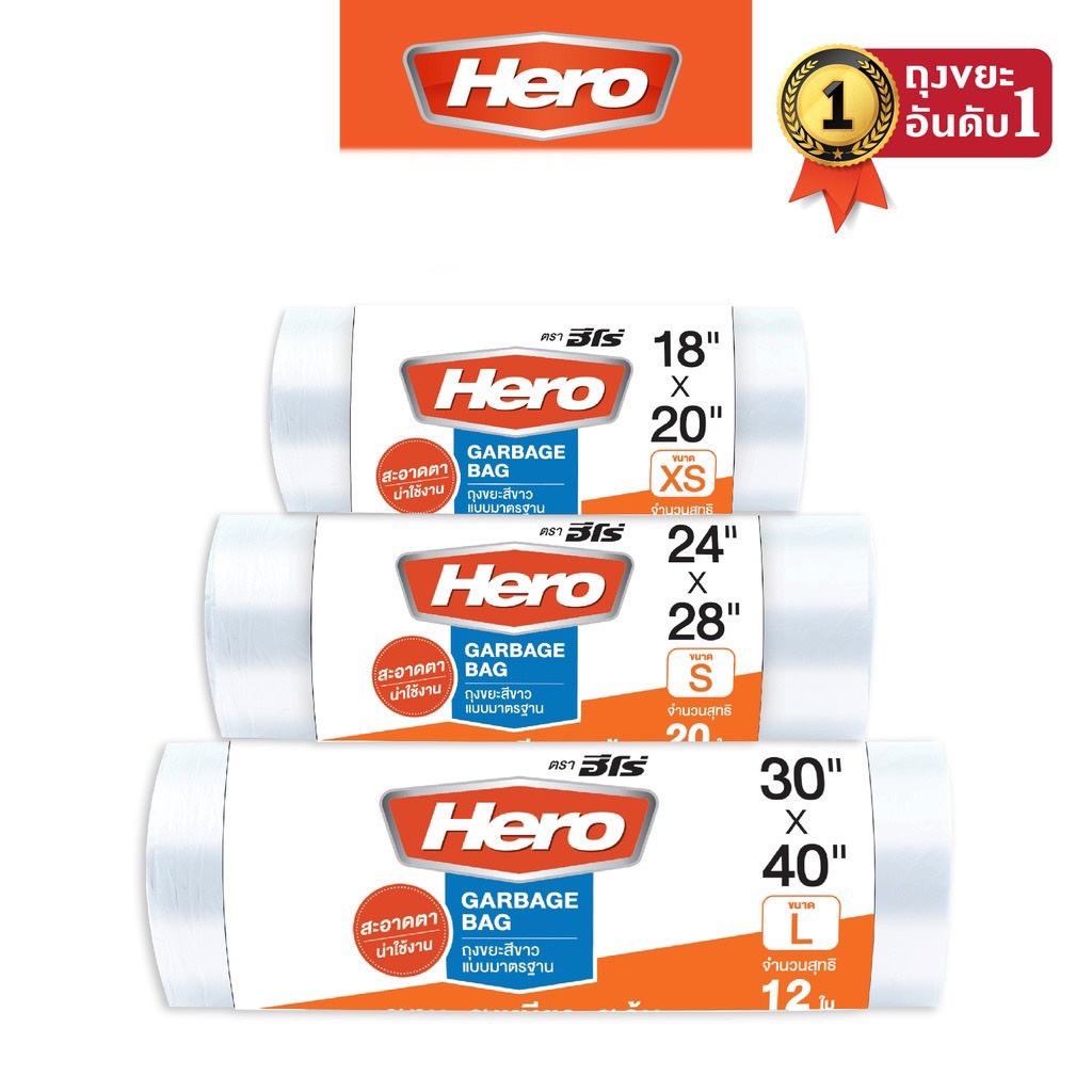ถุงขยะม้วนสีขาว ตราHero