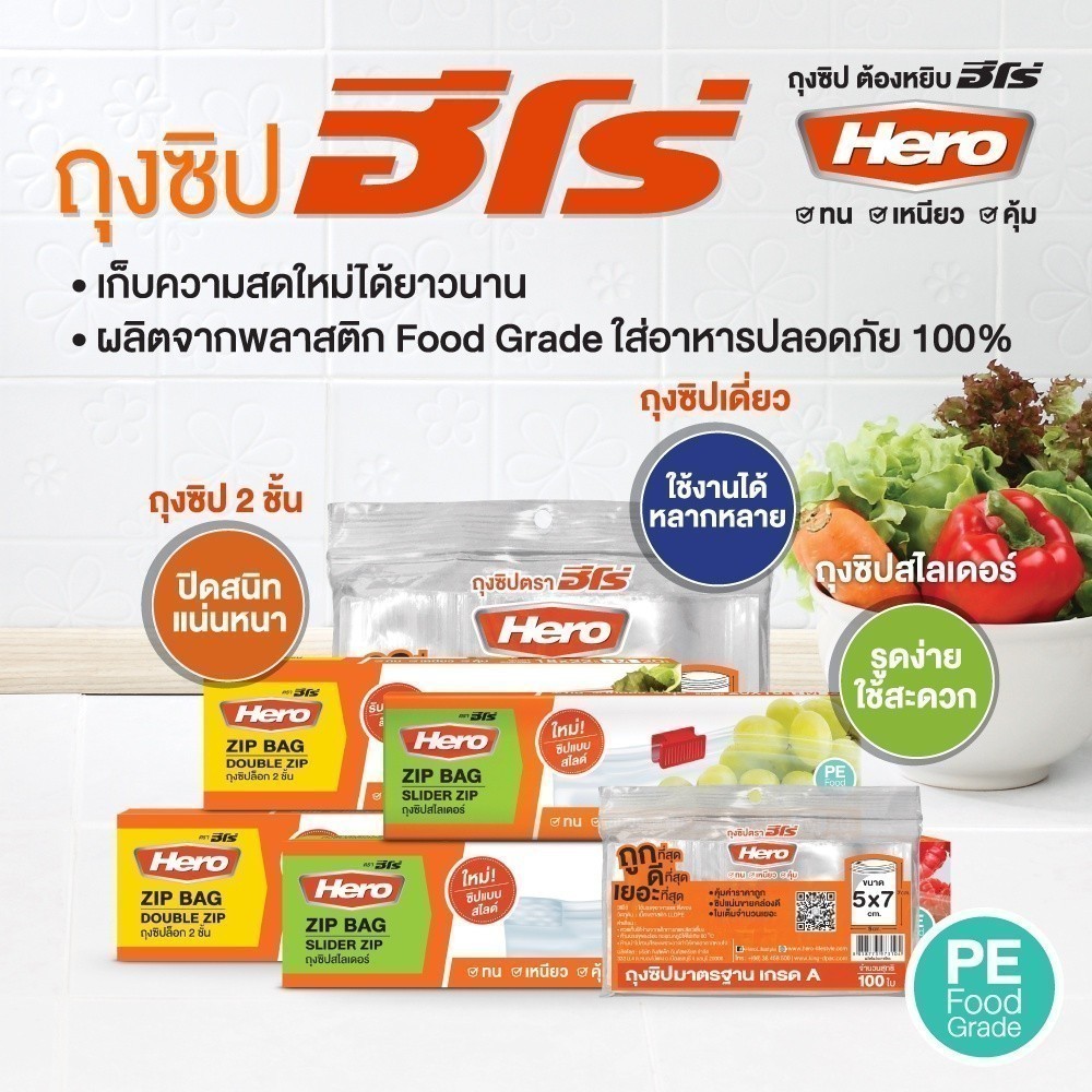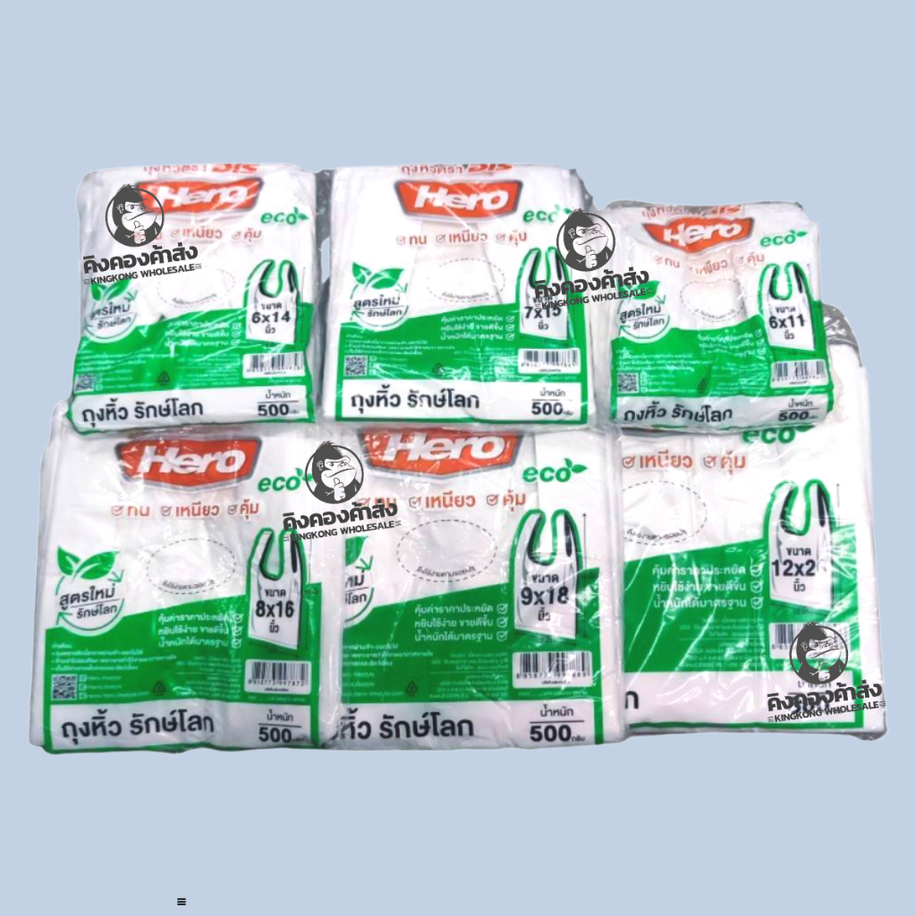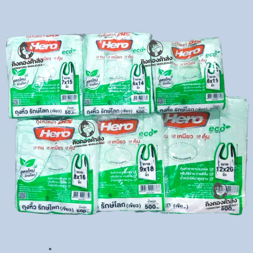 HERO ถุงหิ้ว รักษ์โลก สีขาว/สีเขียว 500 กรัม/แพ็ค ถุงใส่ของ