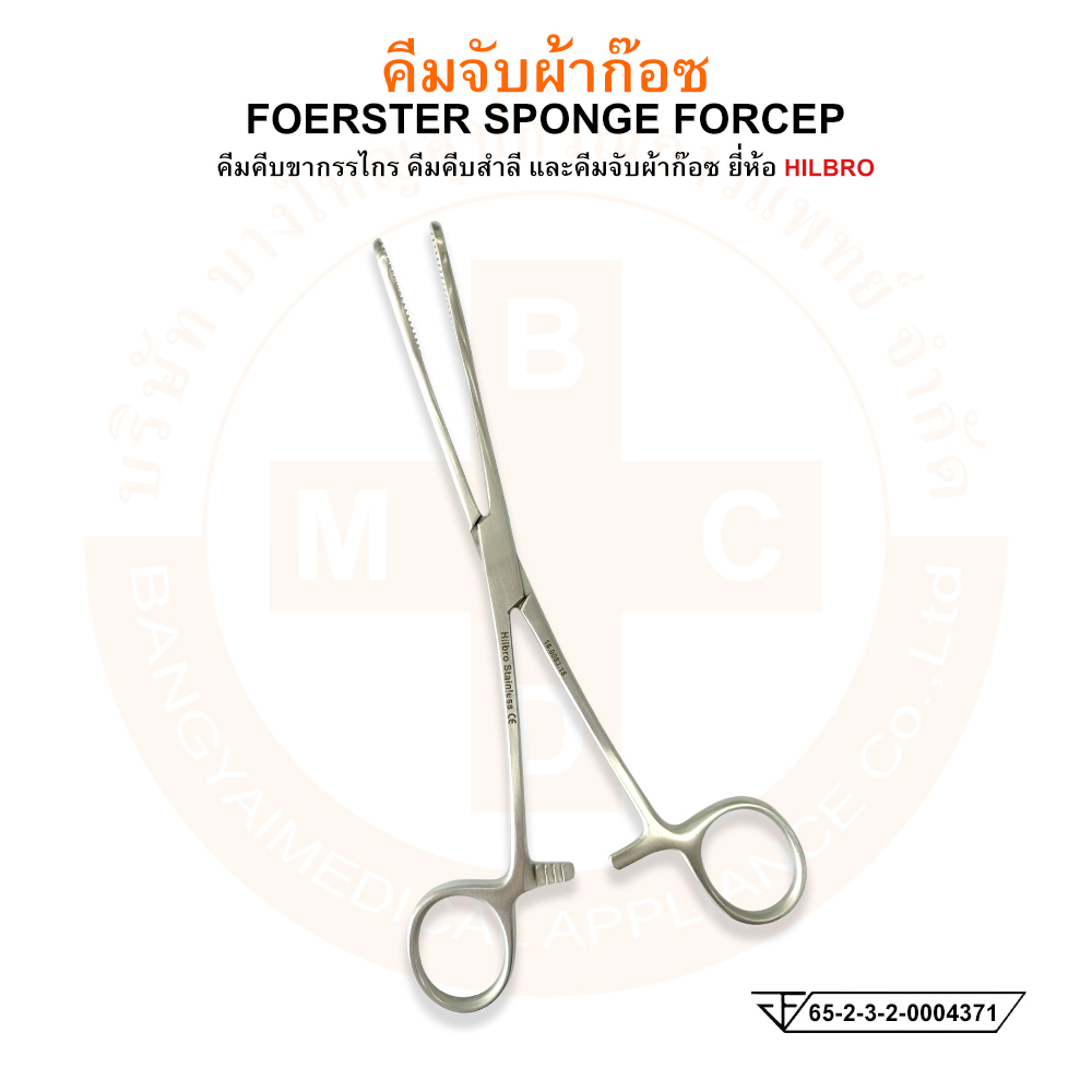 FOERSTER SPONGE FORCEPS คีมคีบสำลี คีมจับผ้าก๊อซ ปลายตรง และปลายโค้ง ยี่ห้อ HILBRO (ฮิลโบร)