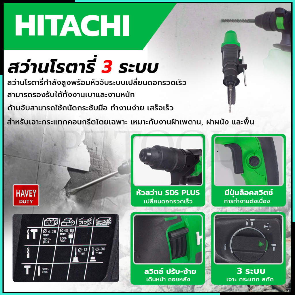 HITACHI สว่านโรตารี่ 3 ระบบ รุ่น 2-26 อุปกรณ์ครบ มีดอกสว่าน (AAA)🔥 ส่งเร็ว ตรงปก 💯🔥🏆