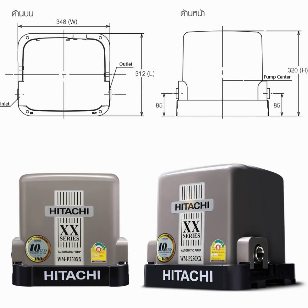 HITACHI ปั๊มน้ำ อัตโนมัติแรงดันคงที่ รุ่น WM-P250XX (250 วัตต์) ประปา ปั้มน้ำ ปั๊ม สำรองน้ำ ฮิตาชิ