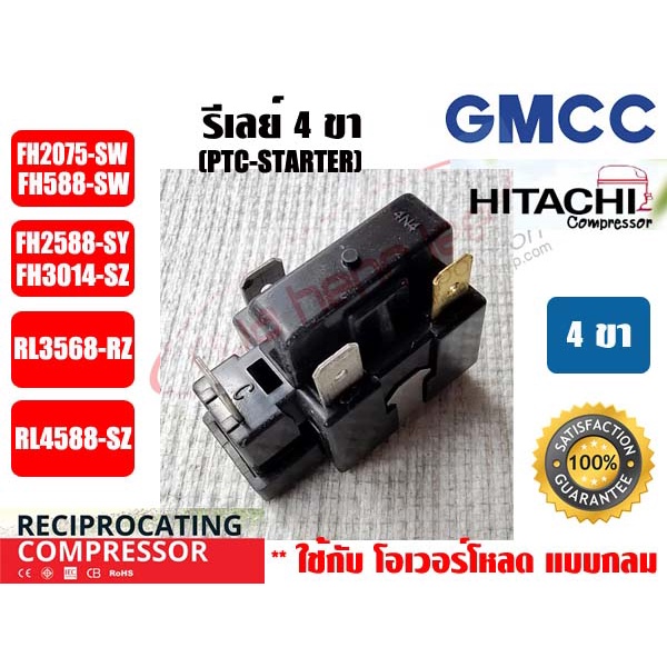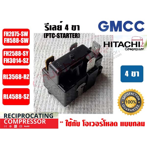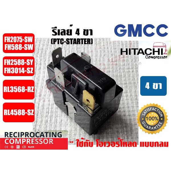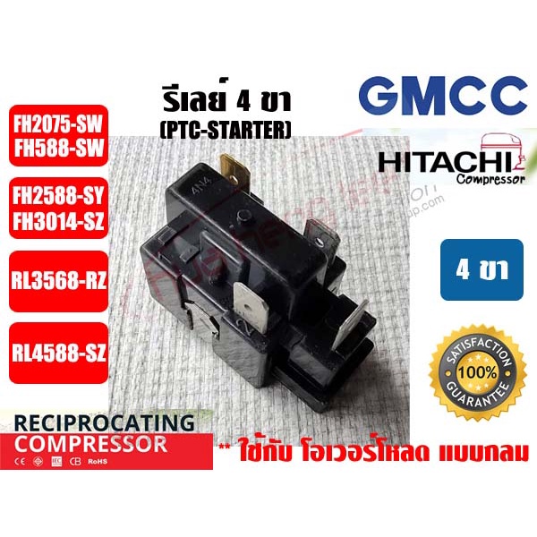 รีเลย์ PTC(IC) 4 ขา สำหรับ คอมเพรสเซอร์ตู้เย็น ยีห่้อ GMCC (HITACHI เดิม)