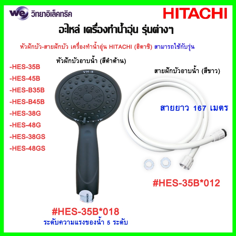 ชุดฝักบัวอาบน้ำ เครื่องทำน้ำอุ่น HITACHI (ฮิตาชิ) อะไหล่แท้ รุ่น SHOWER HEAD VH-5 (MBK)/HOSE ASS’Y (WH)