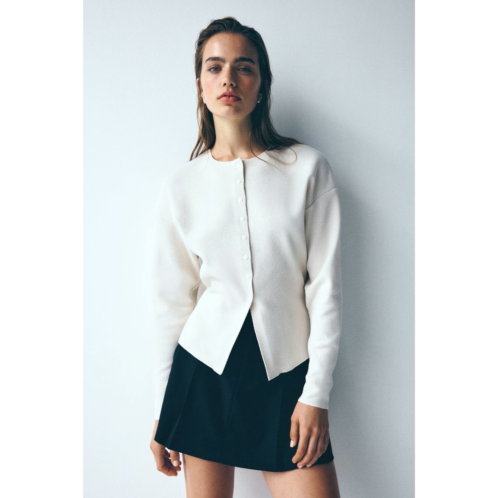 H&M(เอชแอนด์เอ็ม) คาร์ดิแกนถักลายเนื้อผ้า Women Textured-knit cardigan 1304734_1
