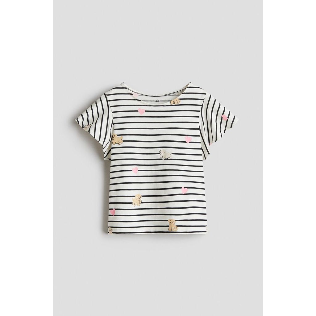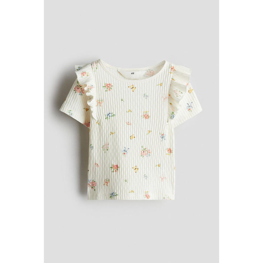 H&M(เอชแอนด์เอ็ม) เสื้อท็อปแขนระบายพิมพ์ลาย Girls Printed flutter-sleeved top 1298109_3
