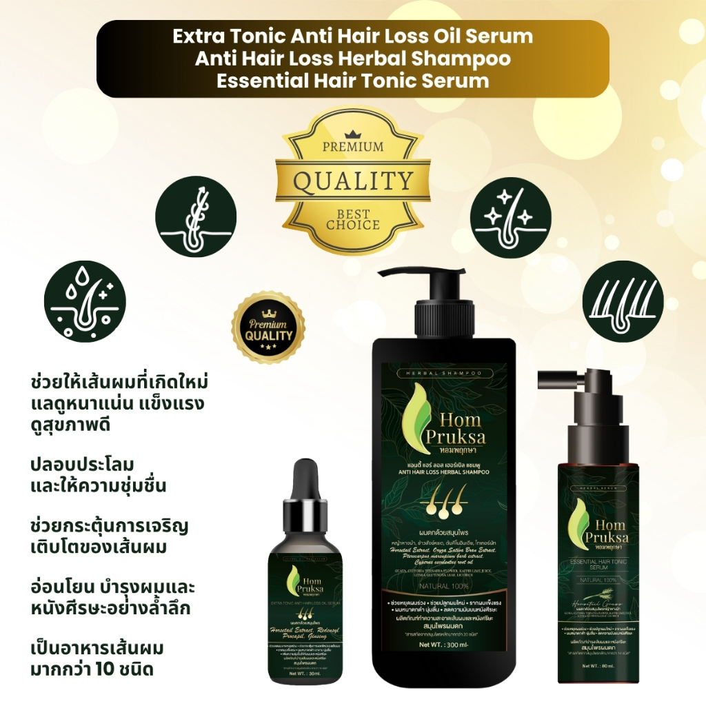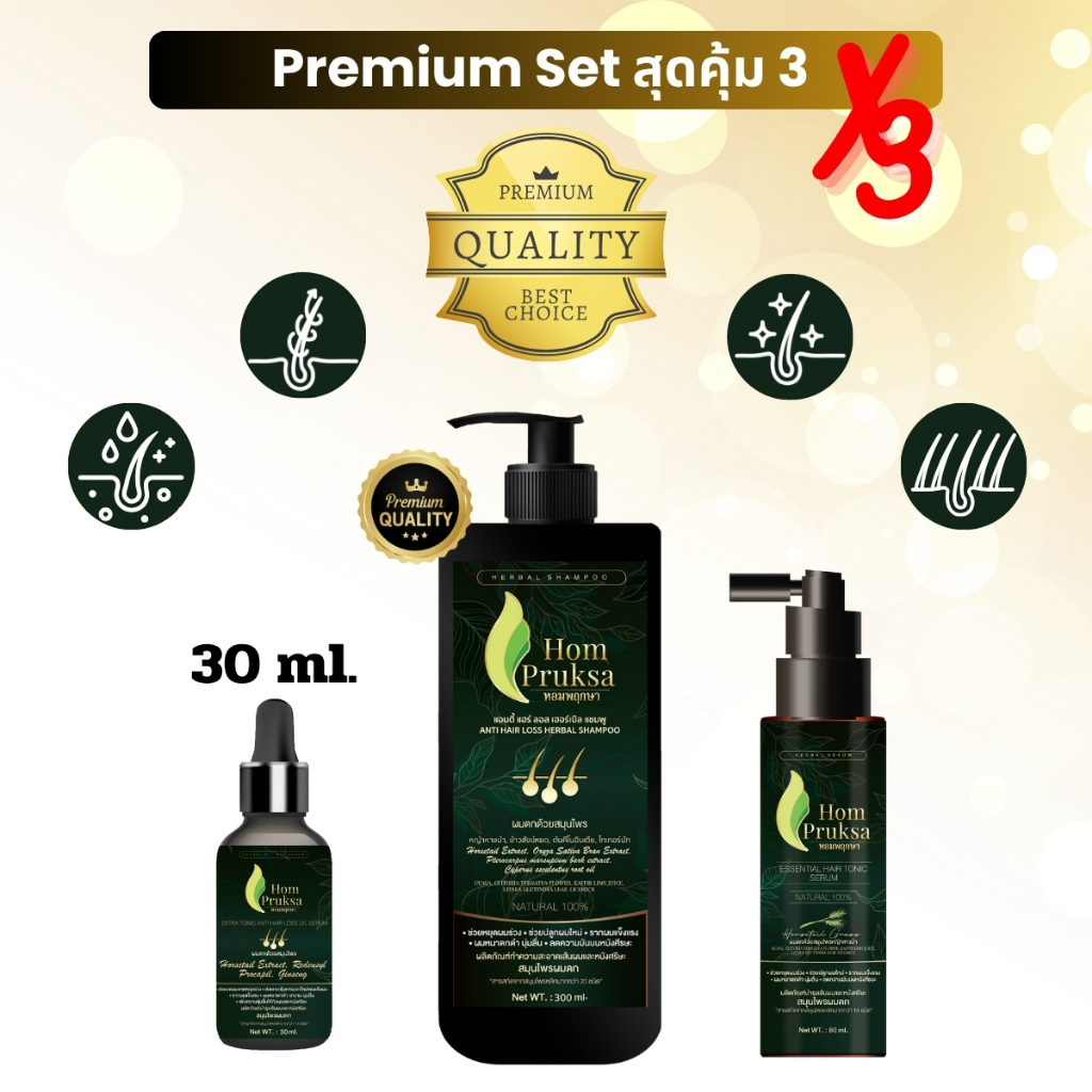 พรีเมี่ยม Set ลดร่วง ผมหนา 3 อย่าง แฮร์ เฮอร์เบิล แชมพูสูตรใหม่ ข้าวสังข์หยด เซรั่มโทนิค และเอ็กส์ตร้า ออยล์ เซรั่ม