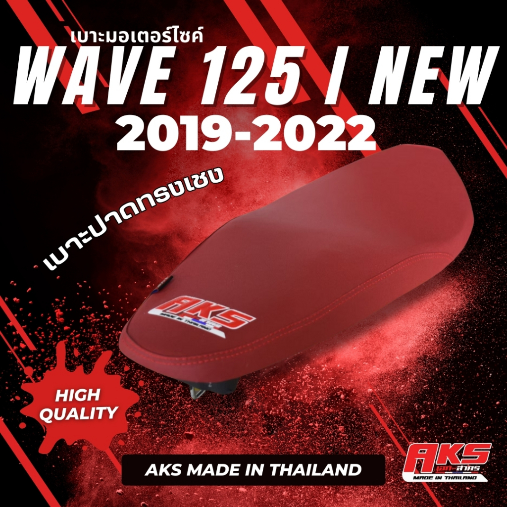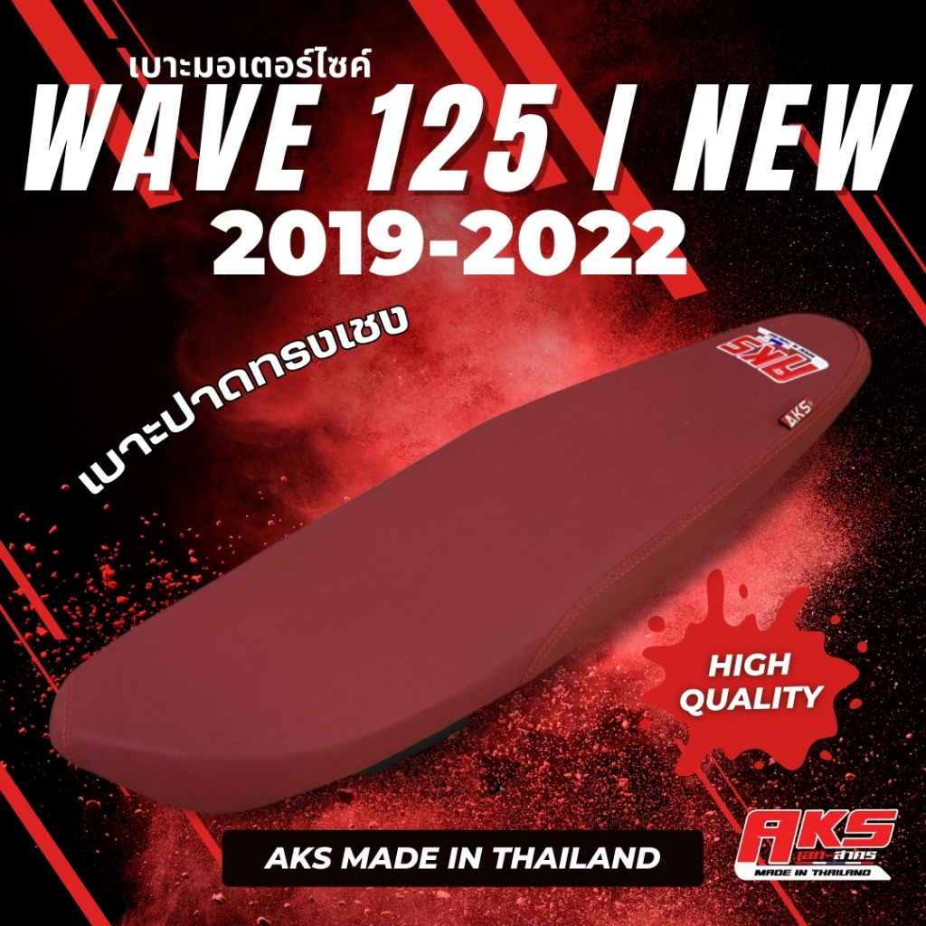 WAVE 125 I NEW (2019-2022) เบาะทรงเชง ผ้าหนังเรเดอร์แดงเลือดหมู AKS made in thailand