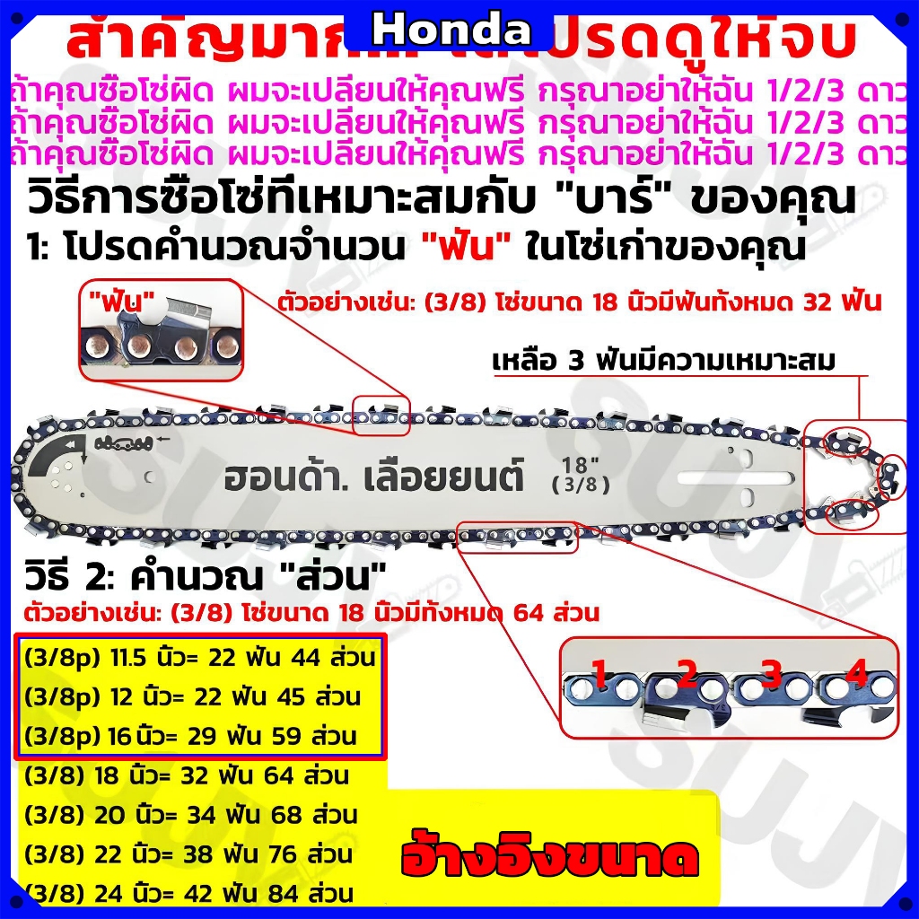 โซ่เลื่อยยนต์ Honda 11.5-24 นิ้ว คุณภาพเหนือราคา ทนทาน คมชัดชุบความร้อนลึก เหมาะสำหรับเลื่อยยนต์ทุกชนิด รับประกัน 12 เดื
