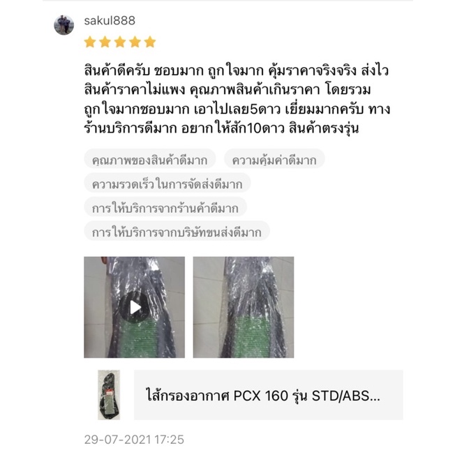 ไส้กรองอากาศ PCX160 STD/ABS,CLICK160STD/ABS,ADV160 อะไหล่ฮอนด้าแท้ 100% รหัส 17210-K1Z-T00