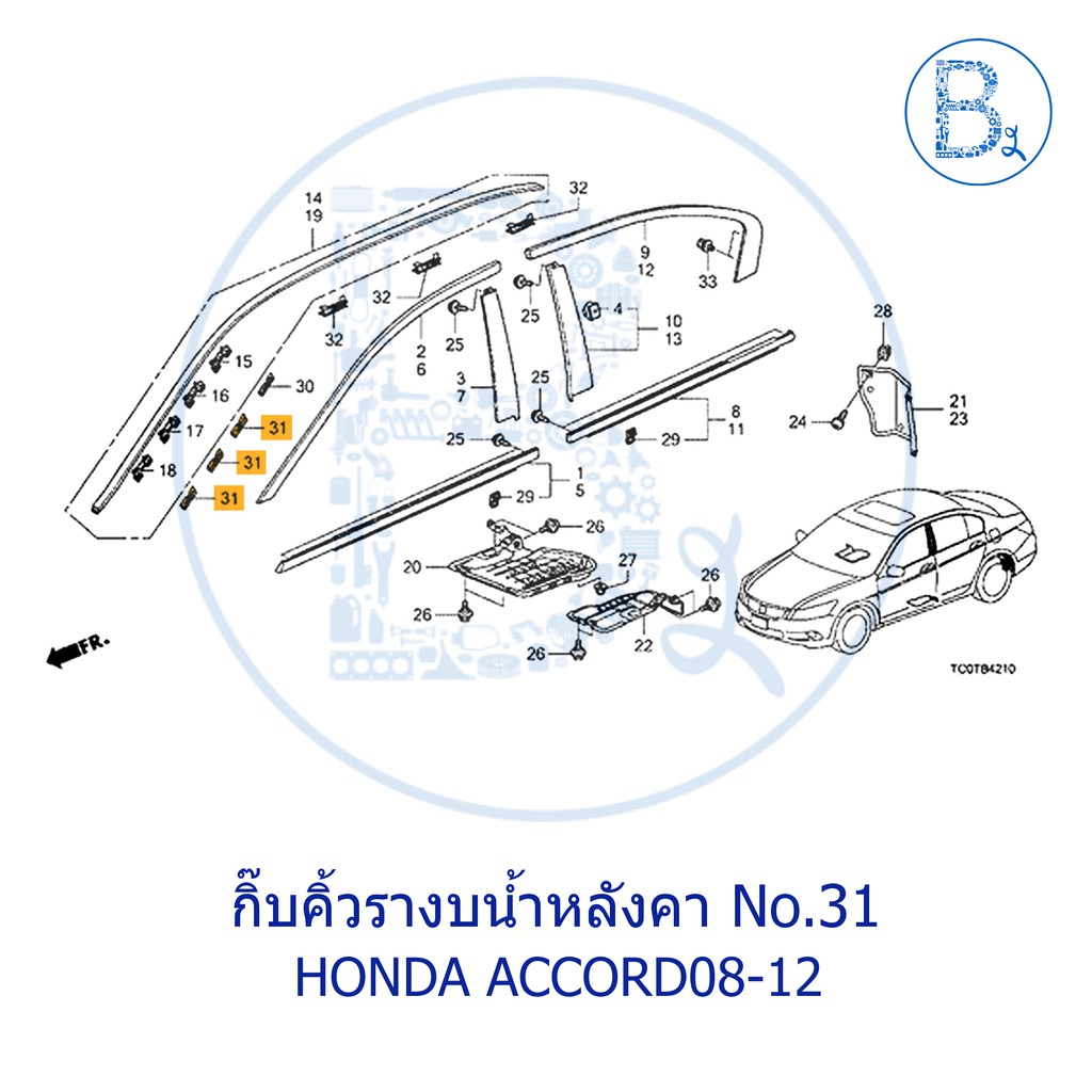 BX186 **อะไหล่แท้** กิ๊บคิ้วรางน้ำหลังคา HONDA ACCORD08-12 สีเบจ