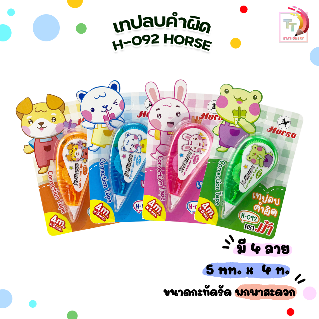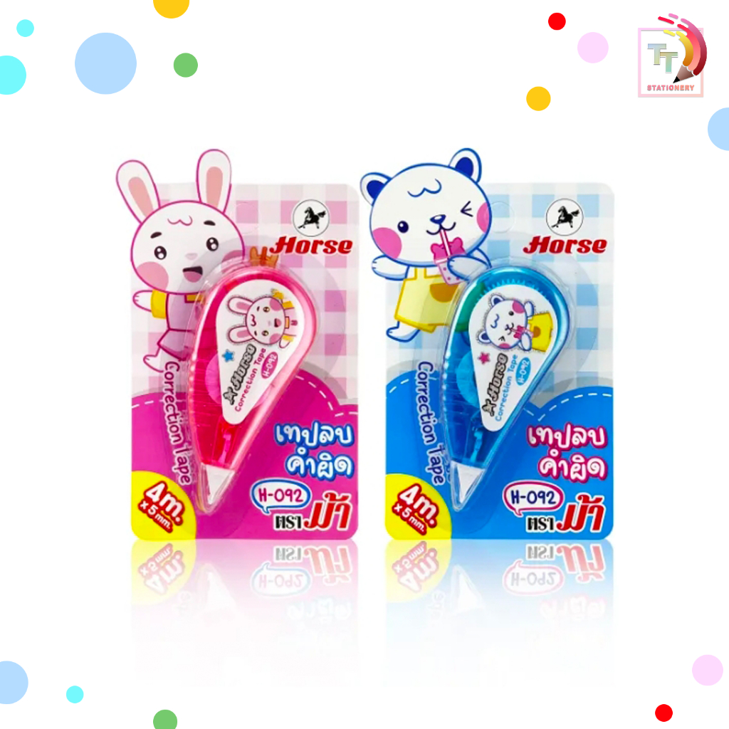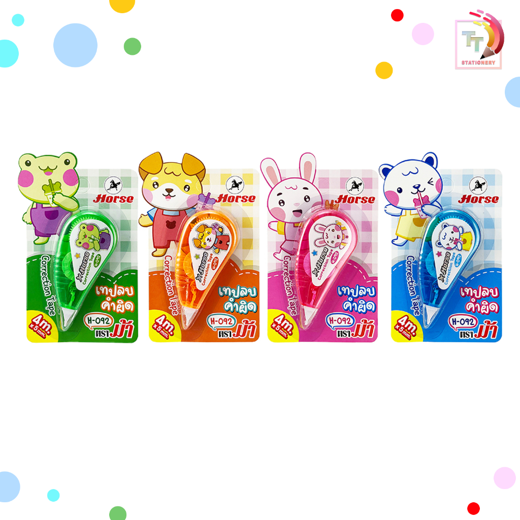 HORSE เทปลบคำผิด ลิควิด รุ่น H-092 ลายการ์ตูน คละลาย คละสี [ 1 ชิ้น ]