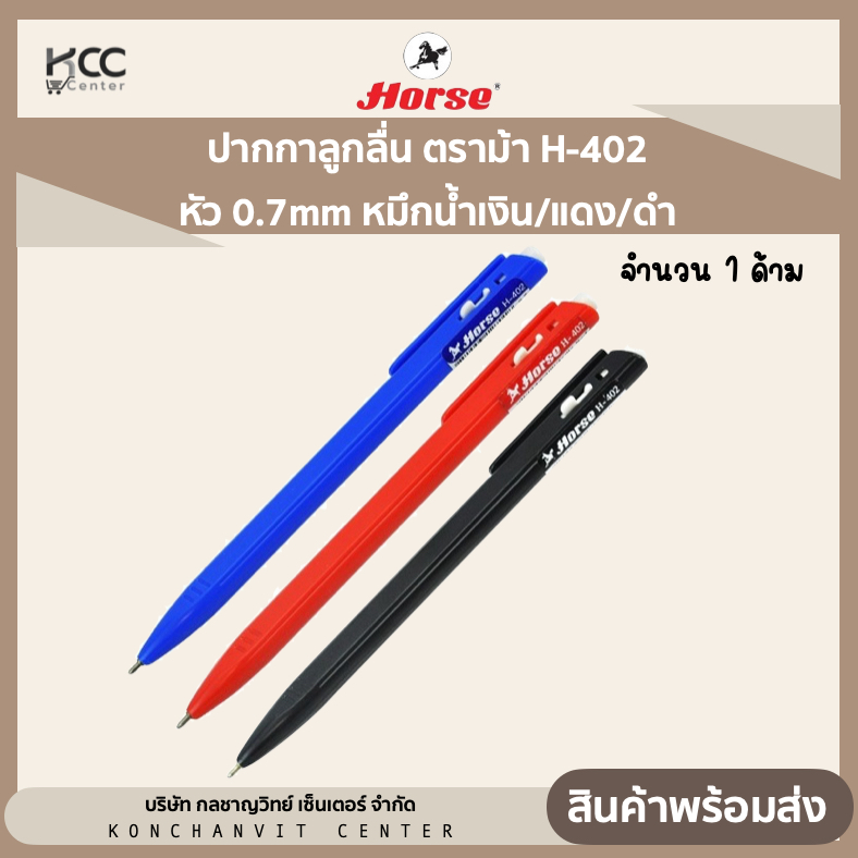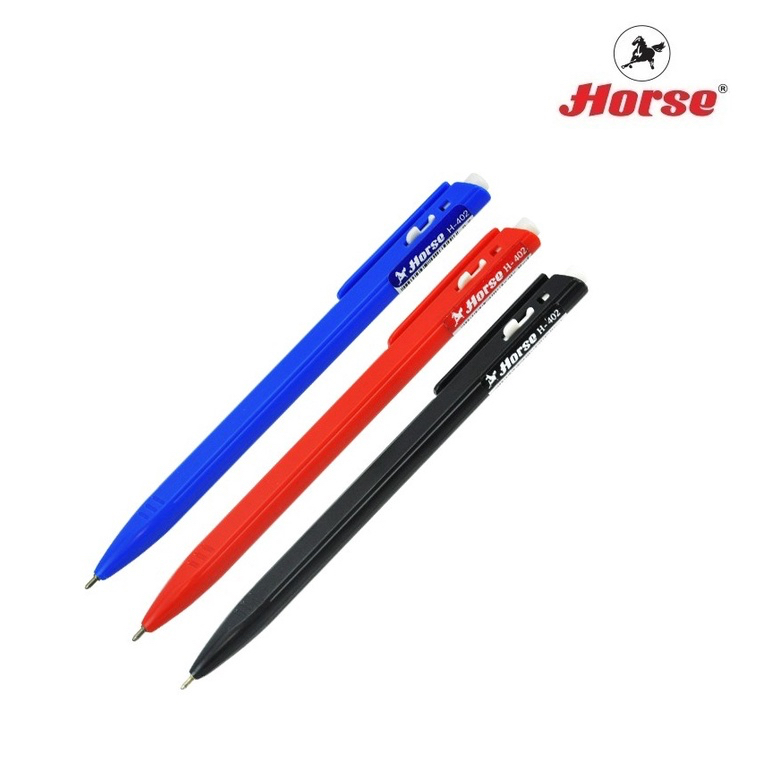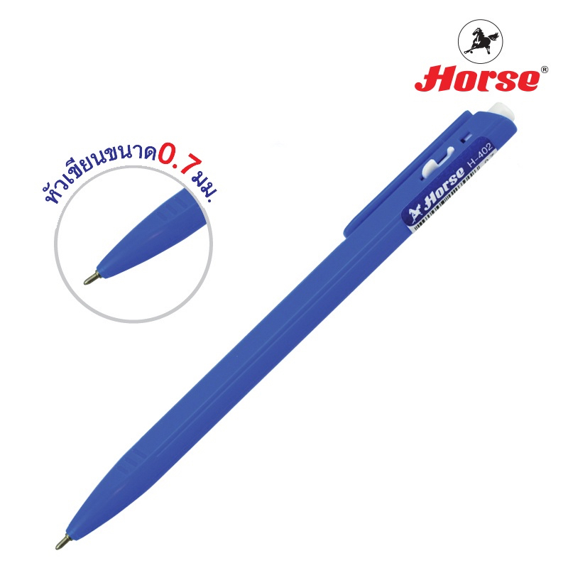 ปากกาลูกลื่น ตราม้า H-402 หัว 0.7mm หมึกน้ำเงิน/หมึกแดง/หมึกดำ (1 ด้าม)