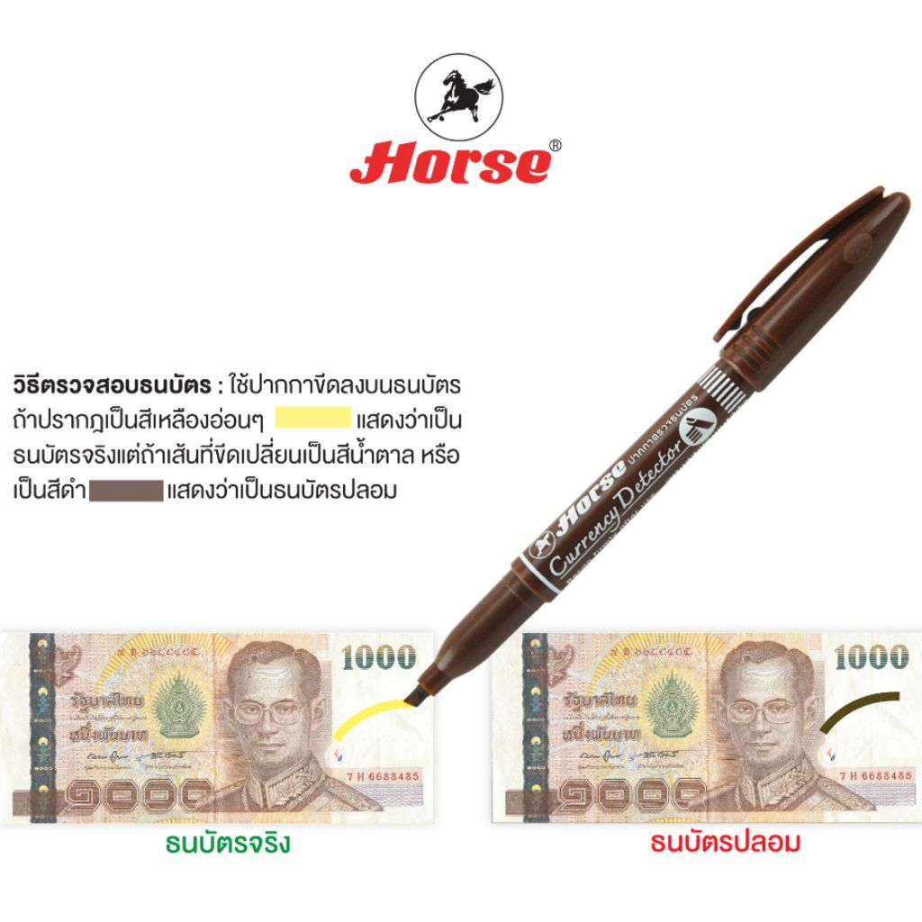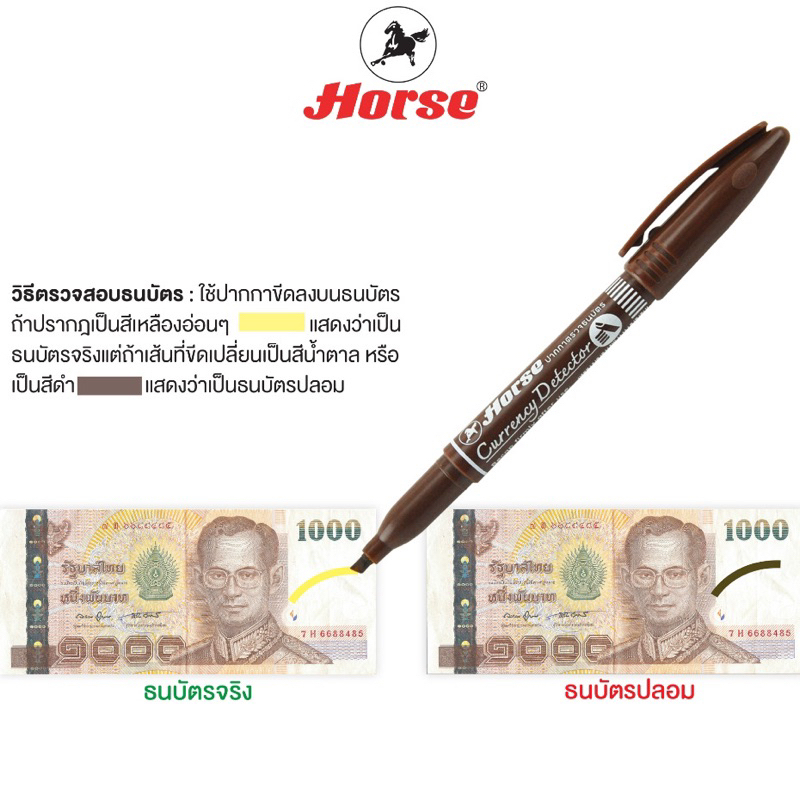 ปากกาตรวจธนบัตรปลอม ปากกาเช็คแบงค์ปลอม ตราม้า Money Detector Pen HORSE (1 ด้าม)