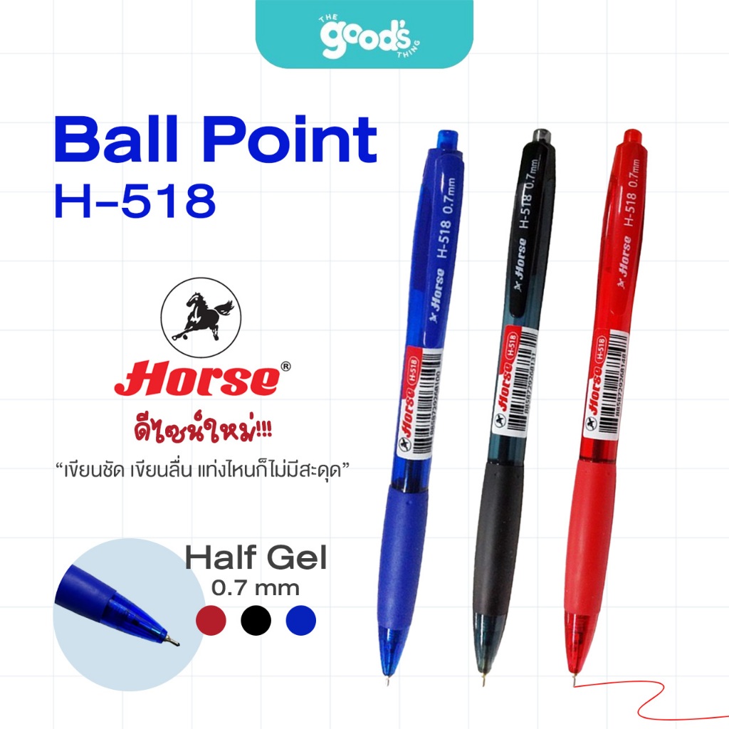 ปากกาลูกลื่น ตราม้า รุ่น H-518 ปากกา HORSE Ball Point (จำนวน1ด้าม)