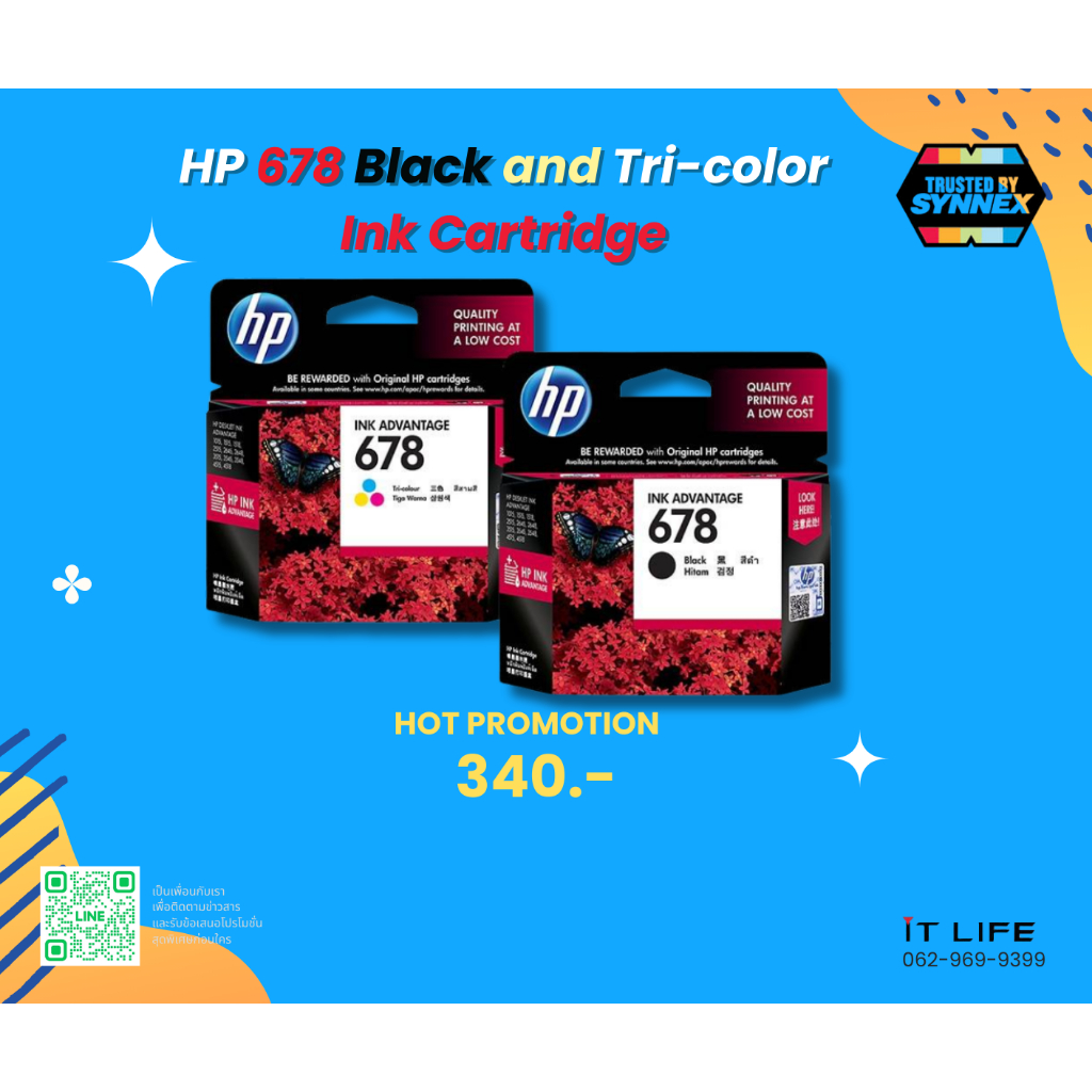ตลับหมึก HP 678 Black and Tri-color Ink Cartridge ของแท้ 100%