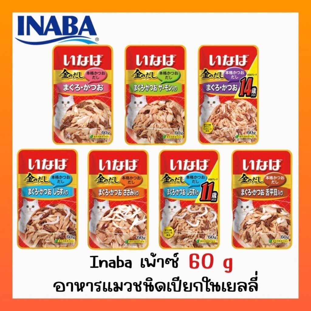 (ซอง)INABA พรีเมี่ยม เพ้าซ์ อาหารแมวทูน่าในเยลลี่รสชาติต่างๆ ขนาดบรรจุ ซองละ 60g