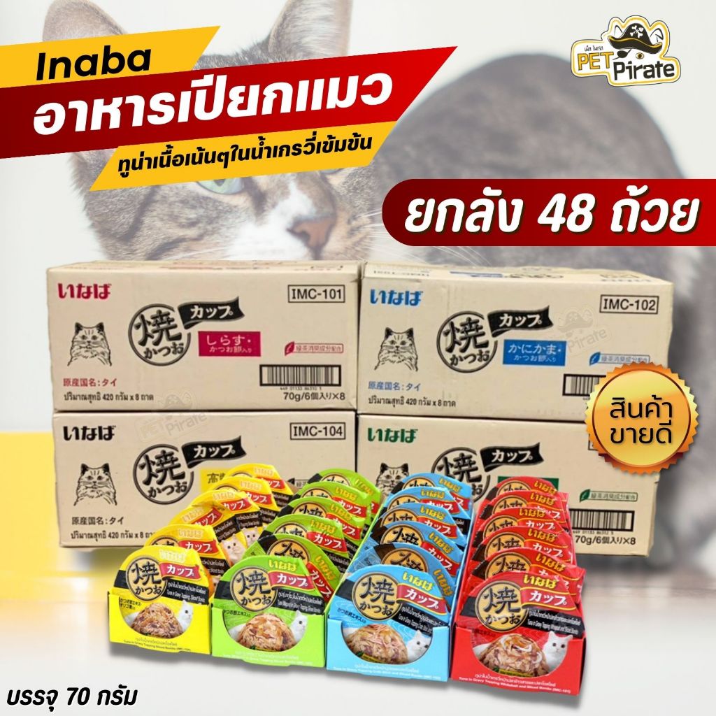 Inaba ถ้วย อาหารเปียกแมว [ยกลัง 48 ถ้วย] ทูน่าเนื้อเน้นๆในน้ำเกรวี่เข้มข้น หอม มีประโยชน์ พกพาสะดวก