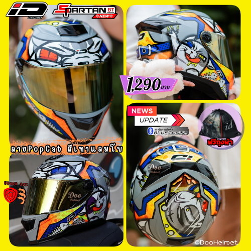Pink PopCat หมวกกันน็อก Index รุ่น ID SPARTAN-Plus ใหม่ล่าสุด 2025รองรับบลูทูธ S-XL