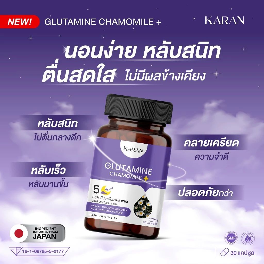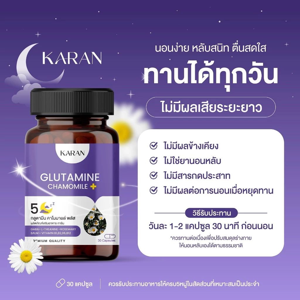 อาหารเสริม KARAN ช่วยหลับ หลับลึก หลับสนิท ตื่นสดชื่น GABA L-Theanine วิตามินบีรวม 30เม็ด