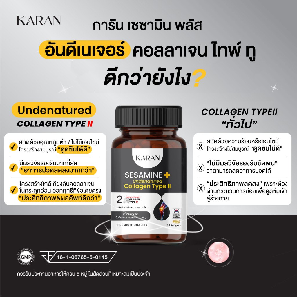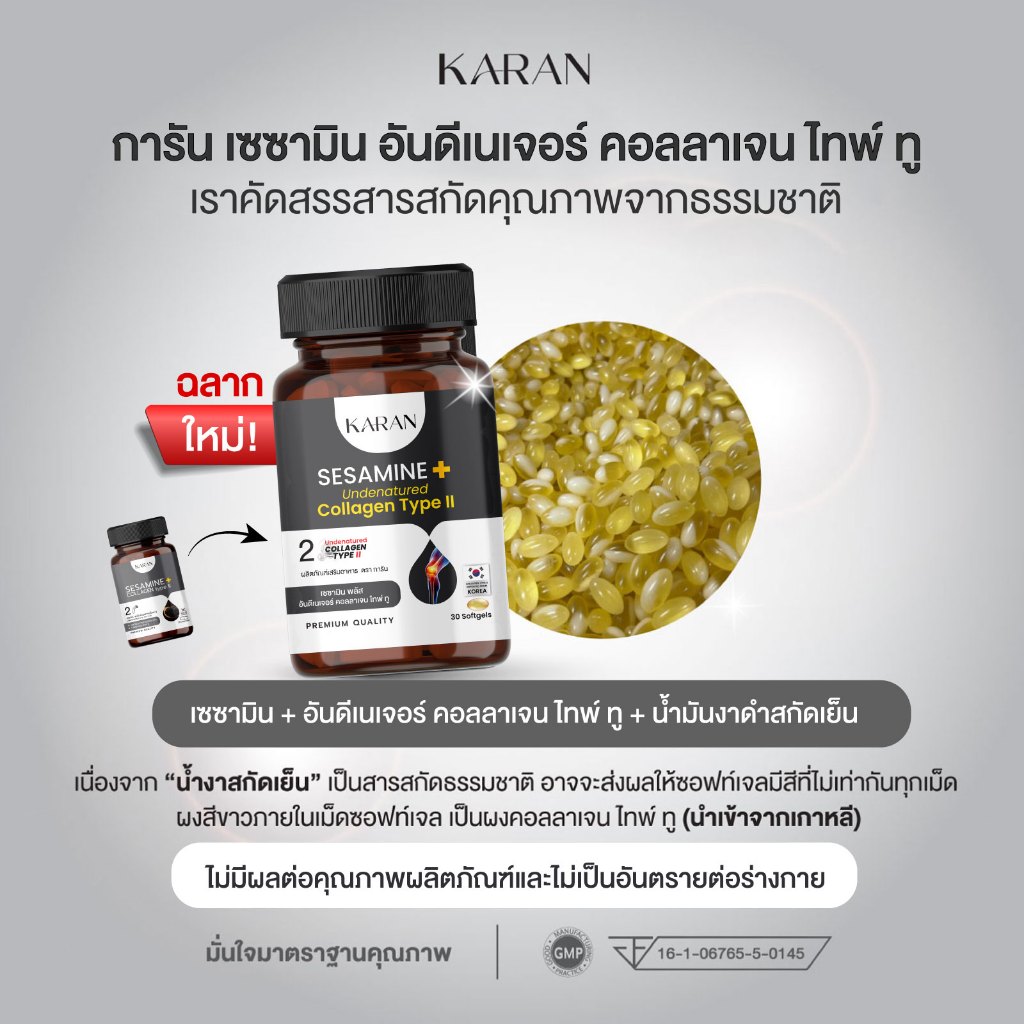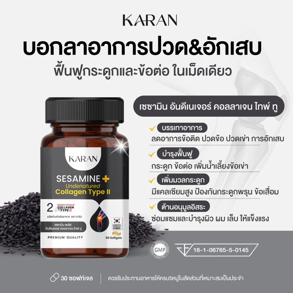 KARAN เซซามินเข้มข้น + อันดีเนเจอร์ คอลลเจน ไทพ์ทู (คอลลาเจนกระดูก&ข้อ)+น้ำมันงาดำสกัดเย็น 30เม็ด