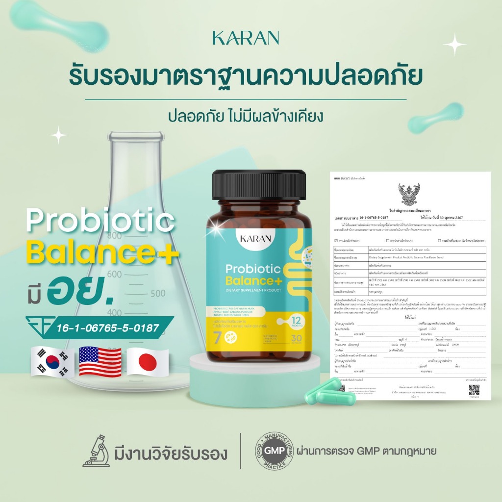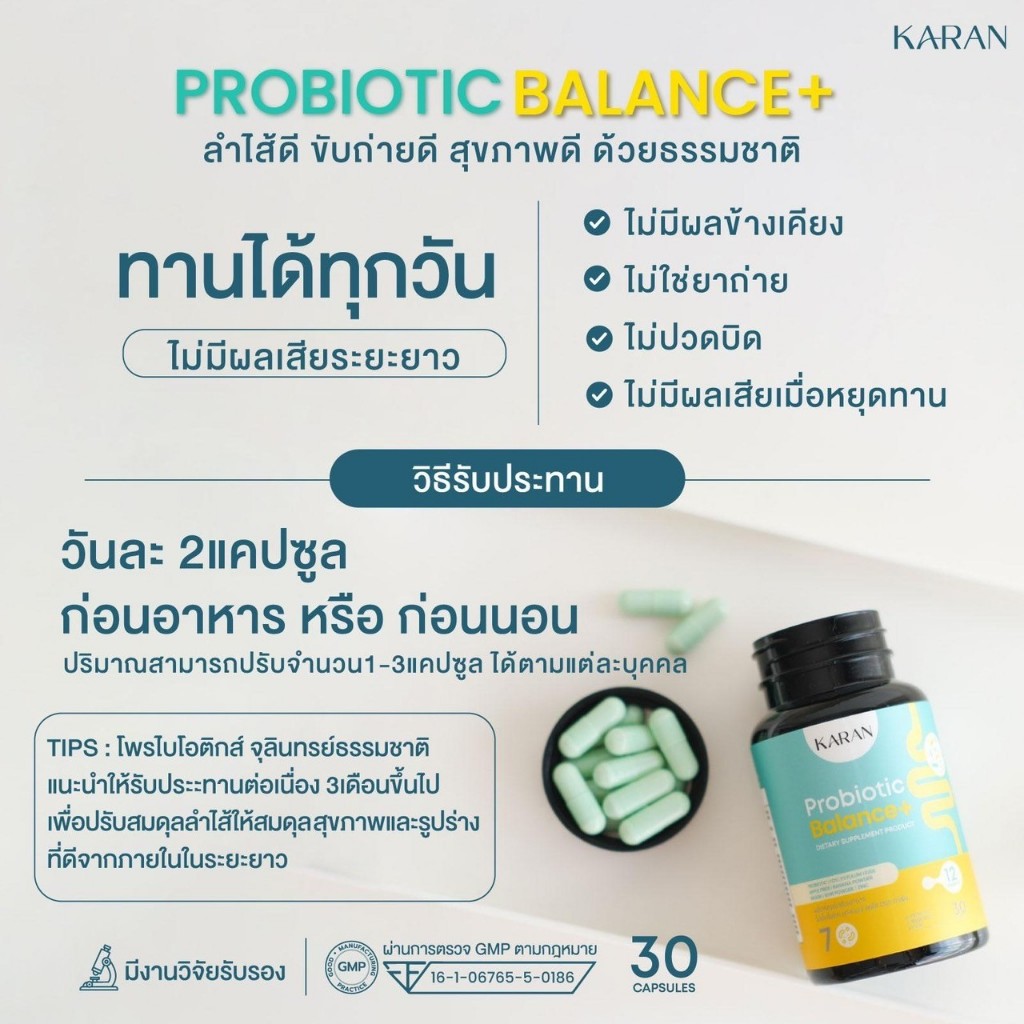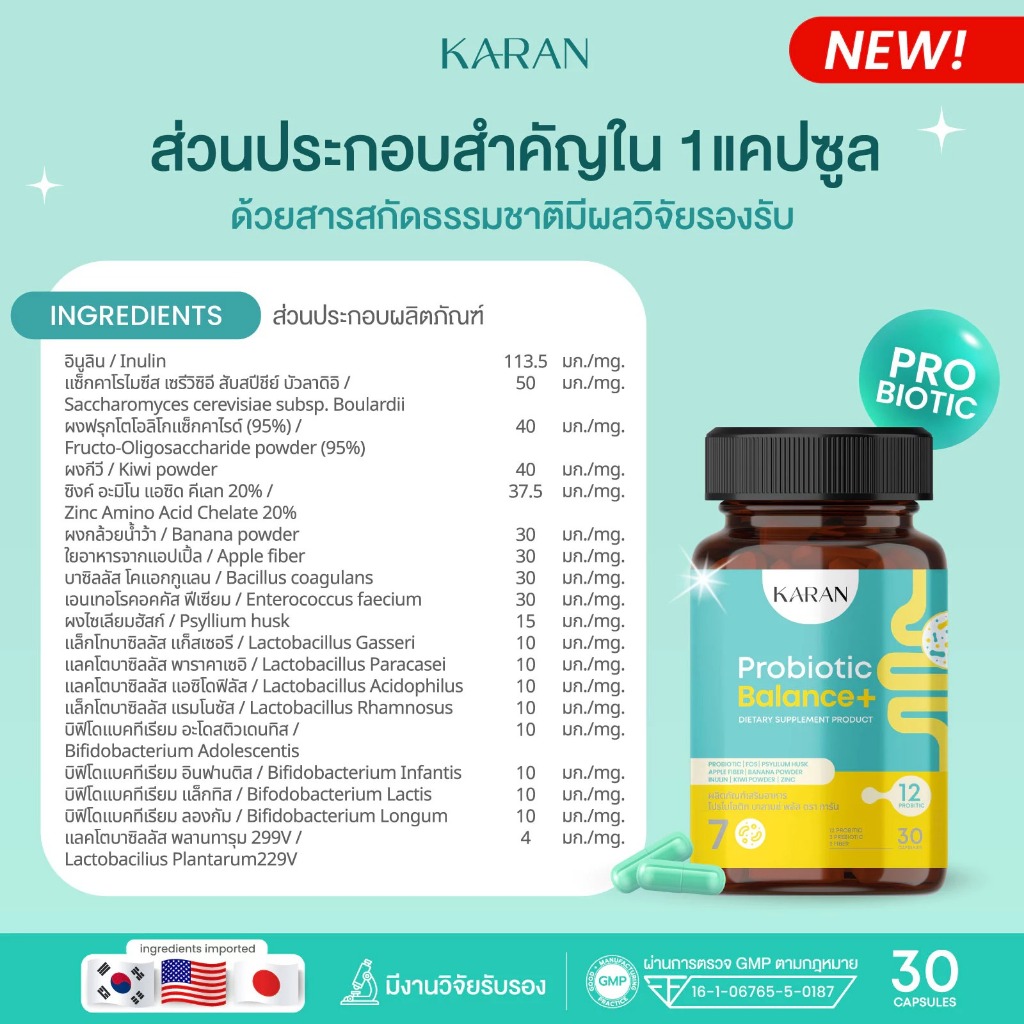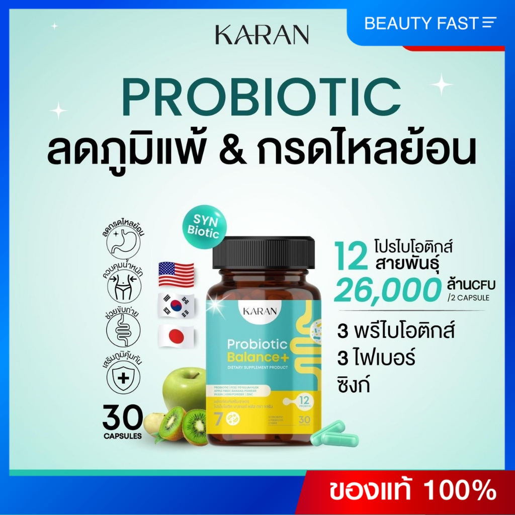 KARAN Probiotic( ปรับสมดุลลำไส้)โพรไบโอติก12สายพันธุ์+พรีไบโอติก3+Fiber3 ขับถ่าย ลดกรดไหลย้อน สู้PM2.5