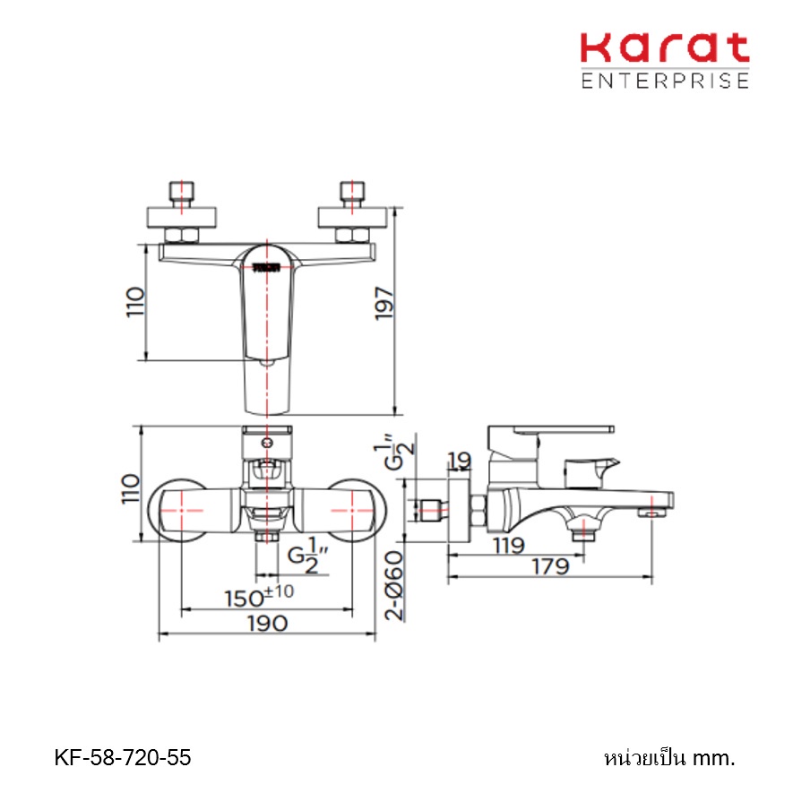 Karat Faucet ก๊อกผสม อ่างอาบน้ำ แบบก้านโยกติดผนัง สำหรับฝักบัวสายอ่อน รุ่น KF-58-720-55