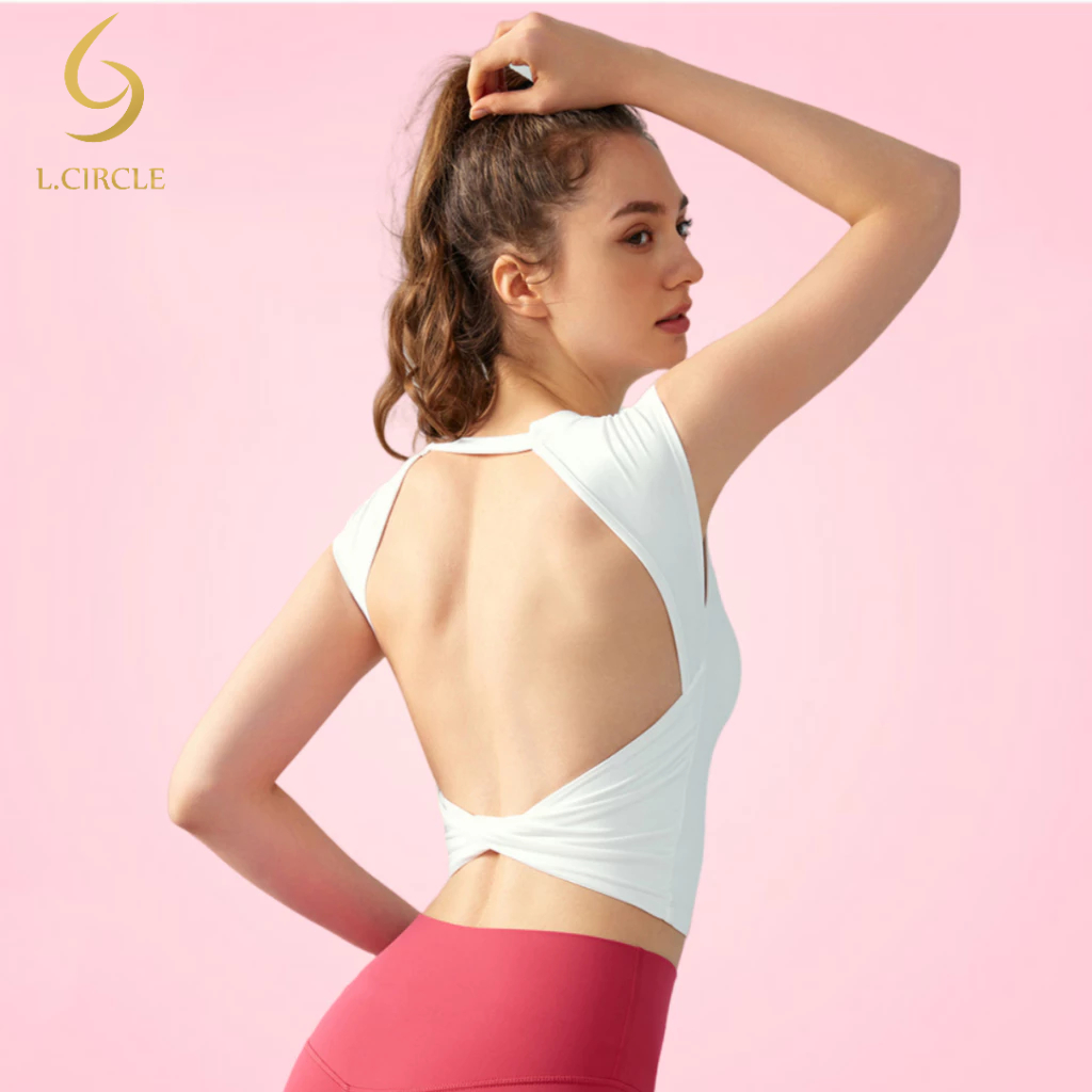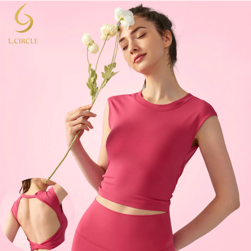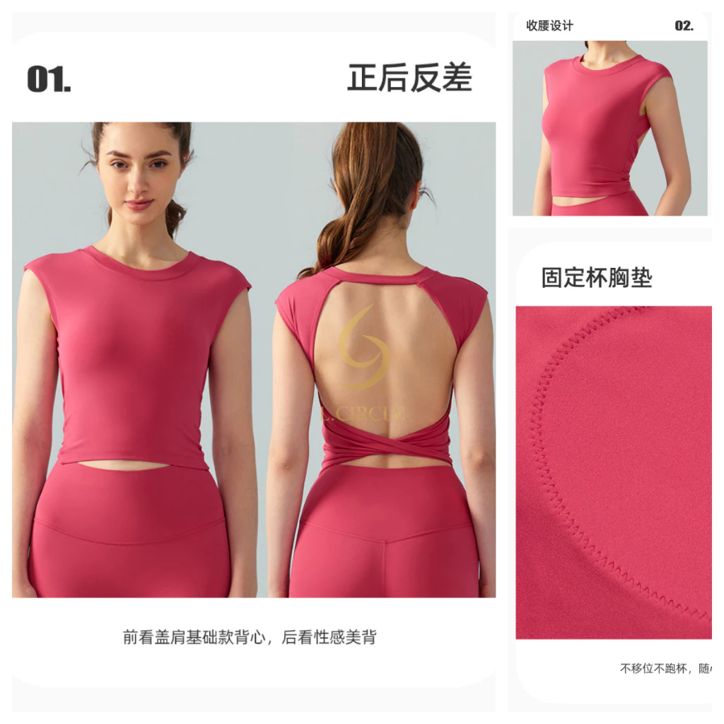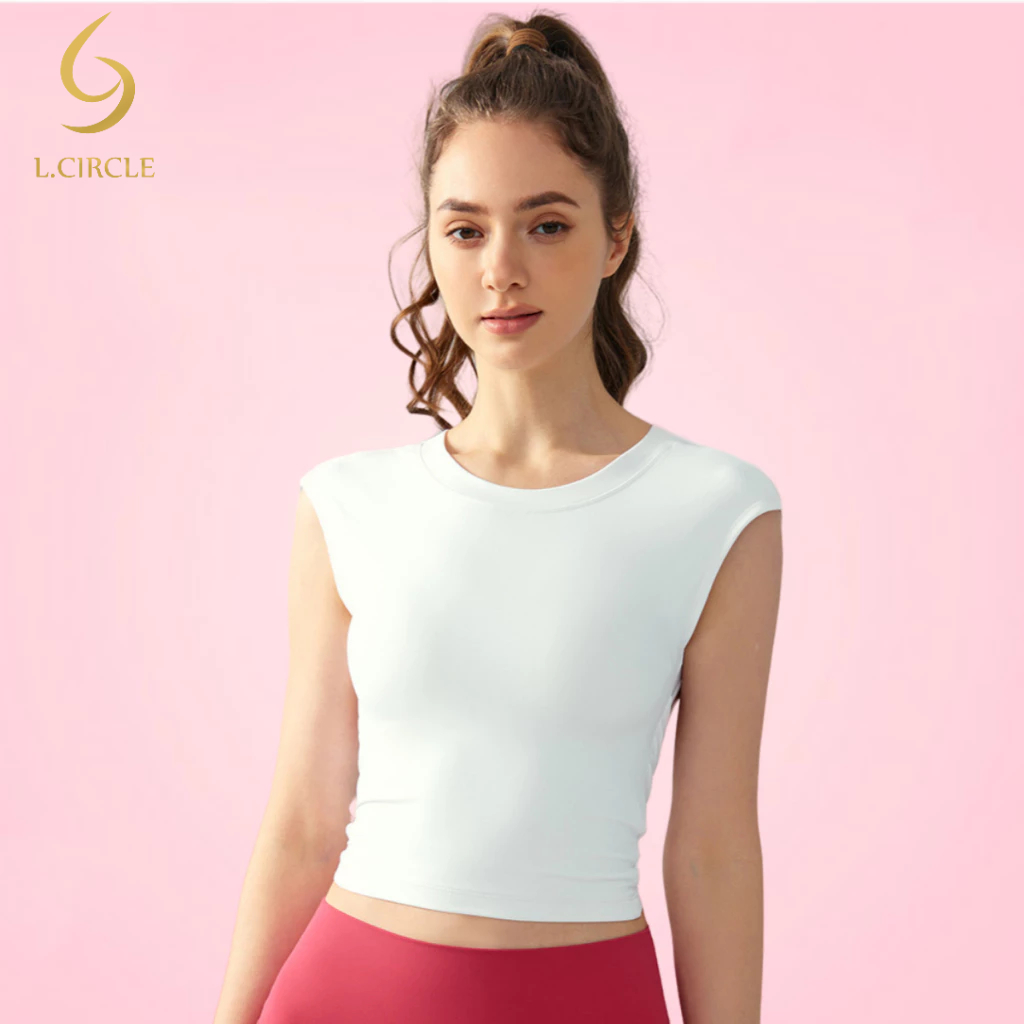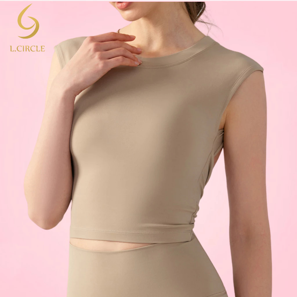 L.CIRCLE(Fixed Pad) กีฬาเสื้อกั๊กโยคะเซ็กซี่ปกหลังด้านข้างหน้าอกกระชับสัดส่วนฟิตเนส