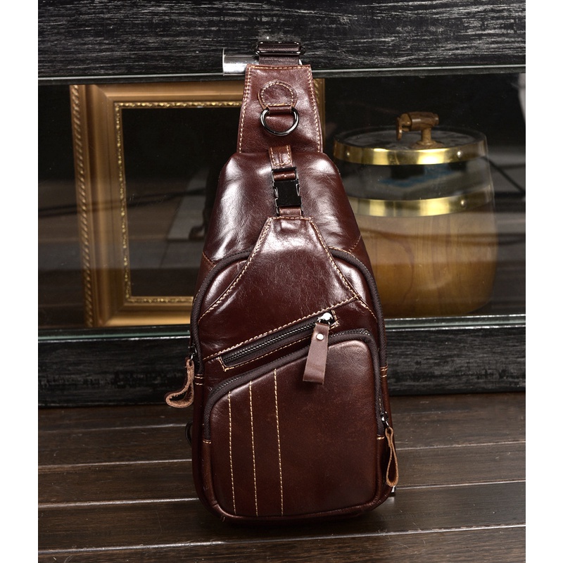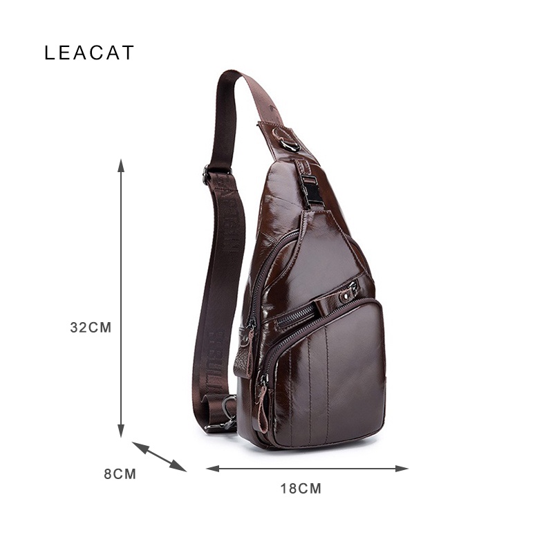 Leacat กระเป๋าสะพายข้างลำลองหนังแท้สำหรับผู้ชาย