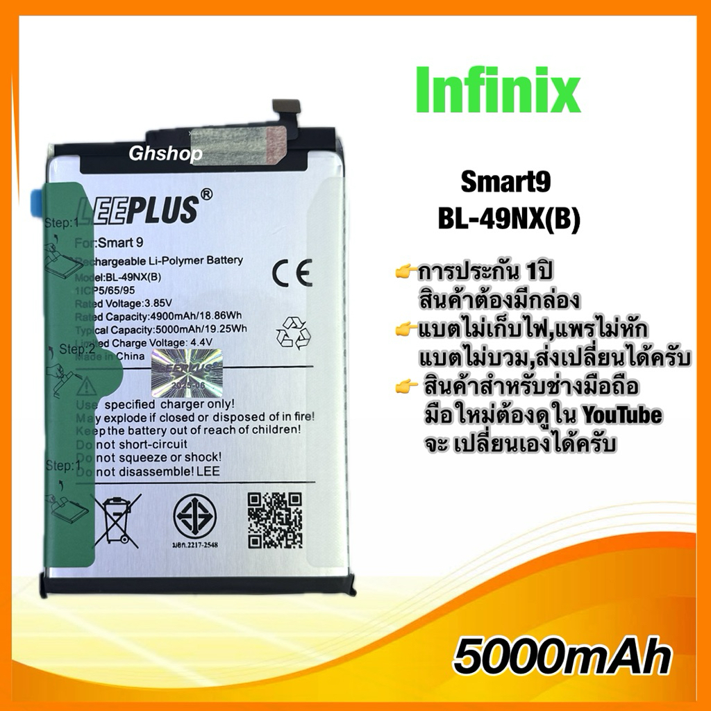 แบตเตอรี่ infinix Smart9 BL-49NX(B) (5000mAh) ยี่ห้อleeplus แบตมี มอก.