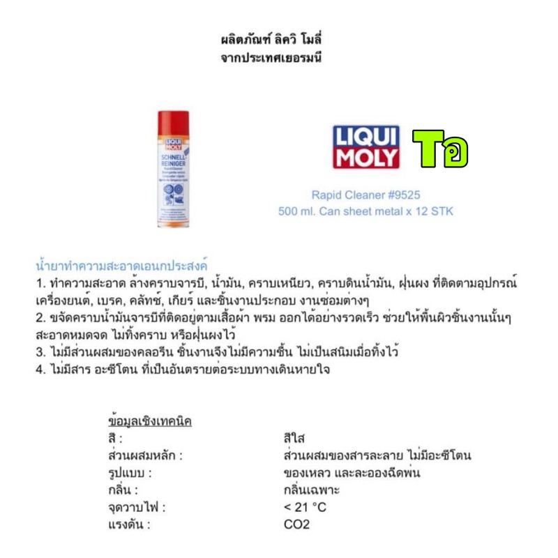 TKD สเปรย์ ล้างเบรค ทำความสะอาดเอนกประสงค์ ล้างครัช คราบน้ำมัน LIQUI MOLY Rapid Cleaner ขนาด 500 ml.