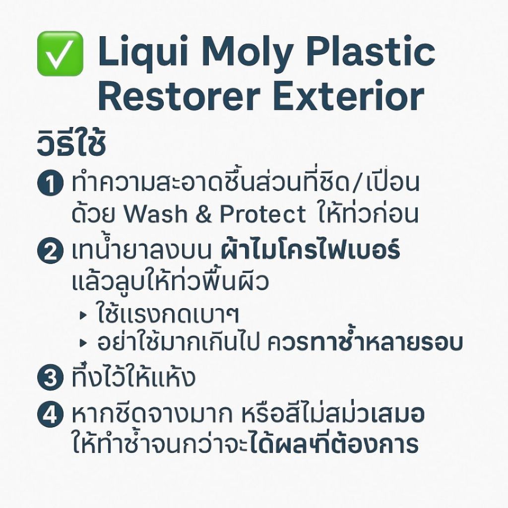 น้ำยาเคลือบฟื้นฟูพลาสติกดำ และสีเข้ม Liqui Moly Plastic Restorer Exterior 250 ml.