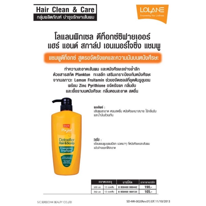 แชมพู โลแลนพิกเซล #ดีท็อกซ์ ซิฟายเออร์ แฮร์ แอนด์ สกาล์ป #Pixxel #Lolane #Detoxifier 550 มล