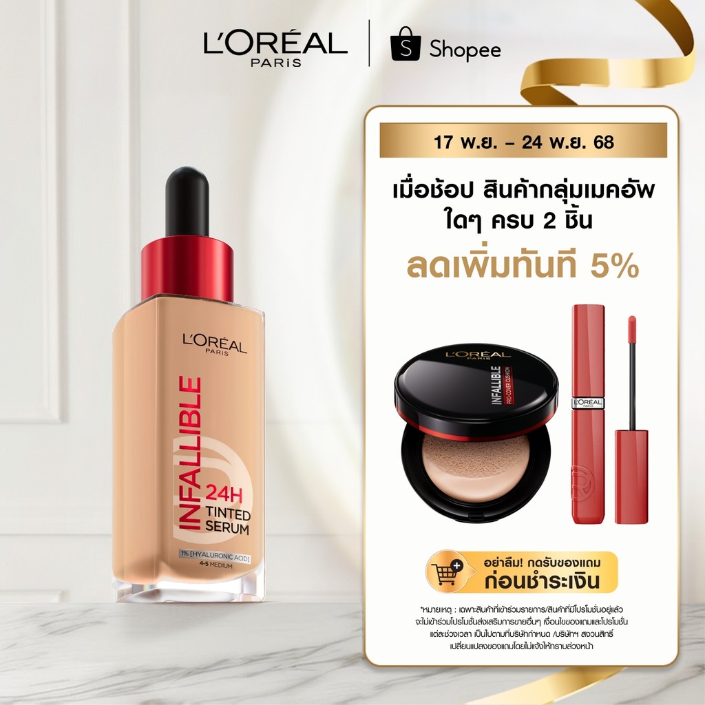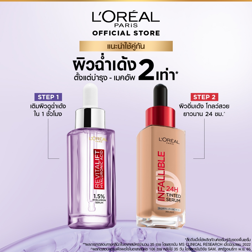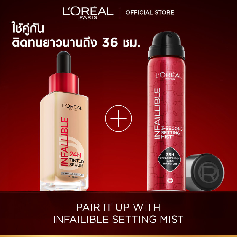 ลอรีอัล ปารีส L’Oreal Paris Infallible 24H Tinted Serum 30ml ทินต์เซรั่ม รองพื้นเนื้อเซรั่มผิวโกลว์สวยติดทน 24 ชม.