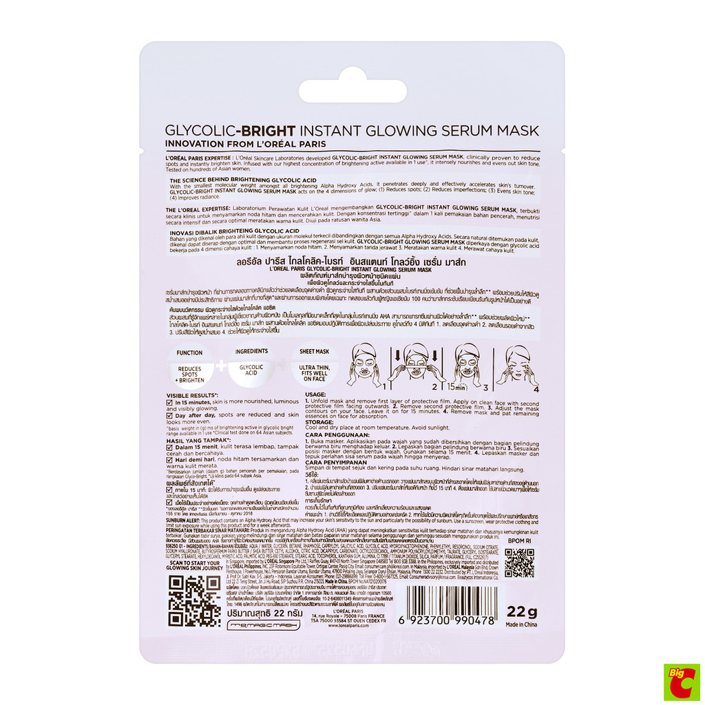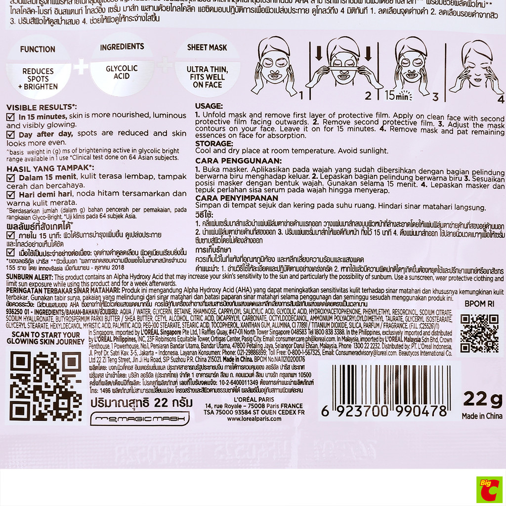 ลอรีอัล ปารีส ไกลโคลิค ไบรท์ อินสแตนท์ โกลว์อิ้ง มาส์ก