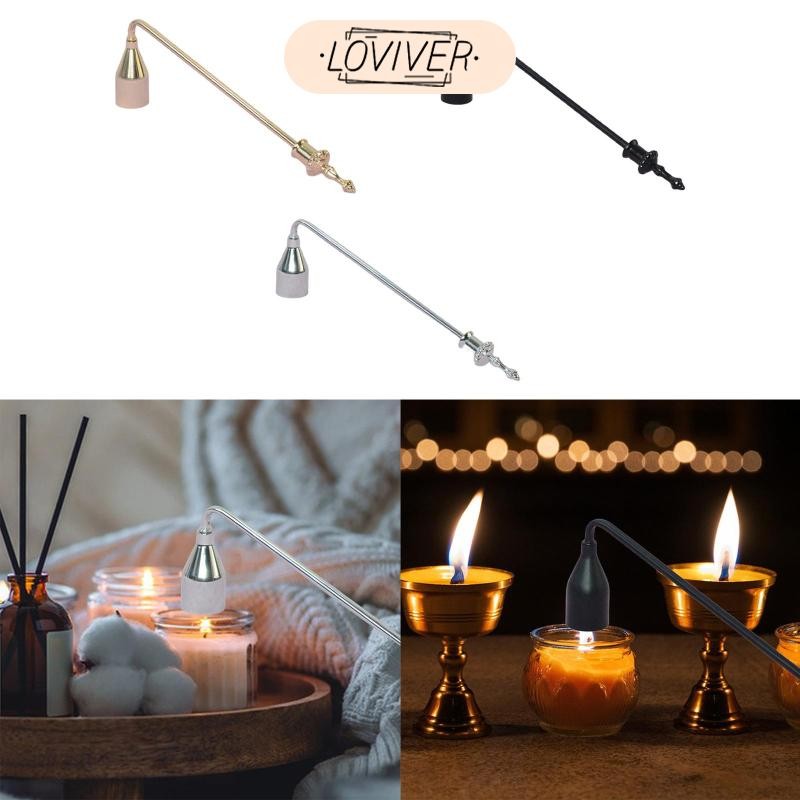 LOVIVER 9นิ้วเครื่องดับเทียนเทียนโดมไส้ตะเกียงดับปกขัดพื้นผิวระฆังรูปทนทานอเนกประสงค์ที่มีด้ามยาว