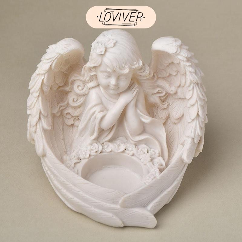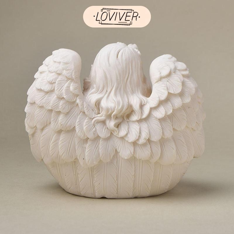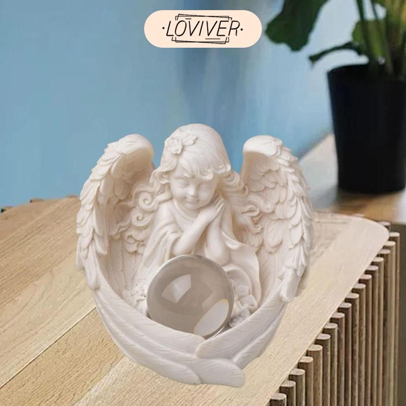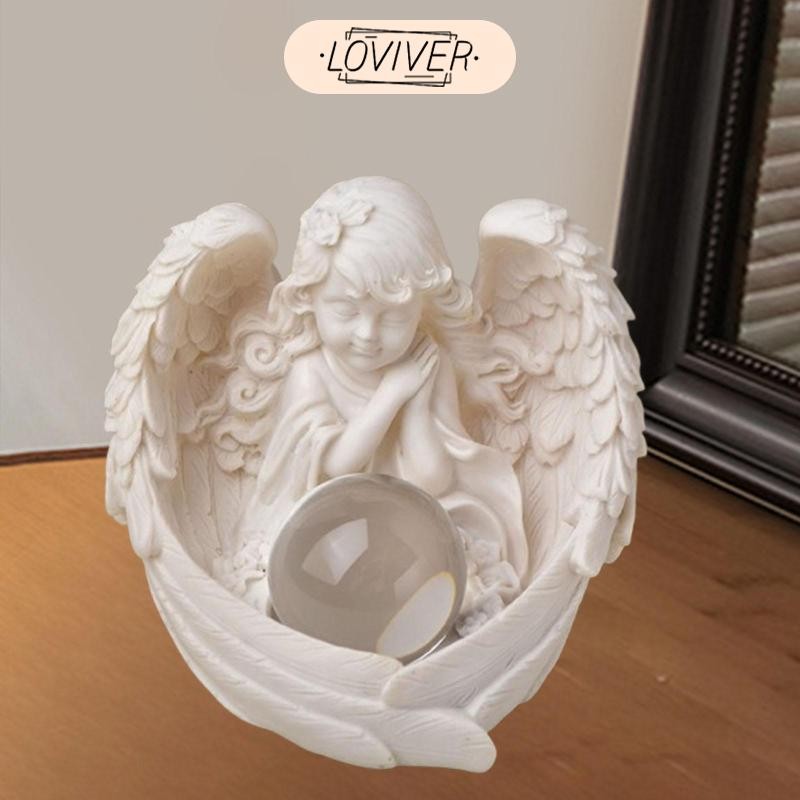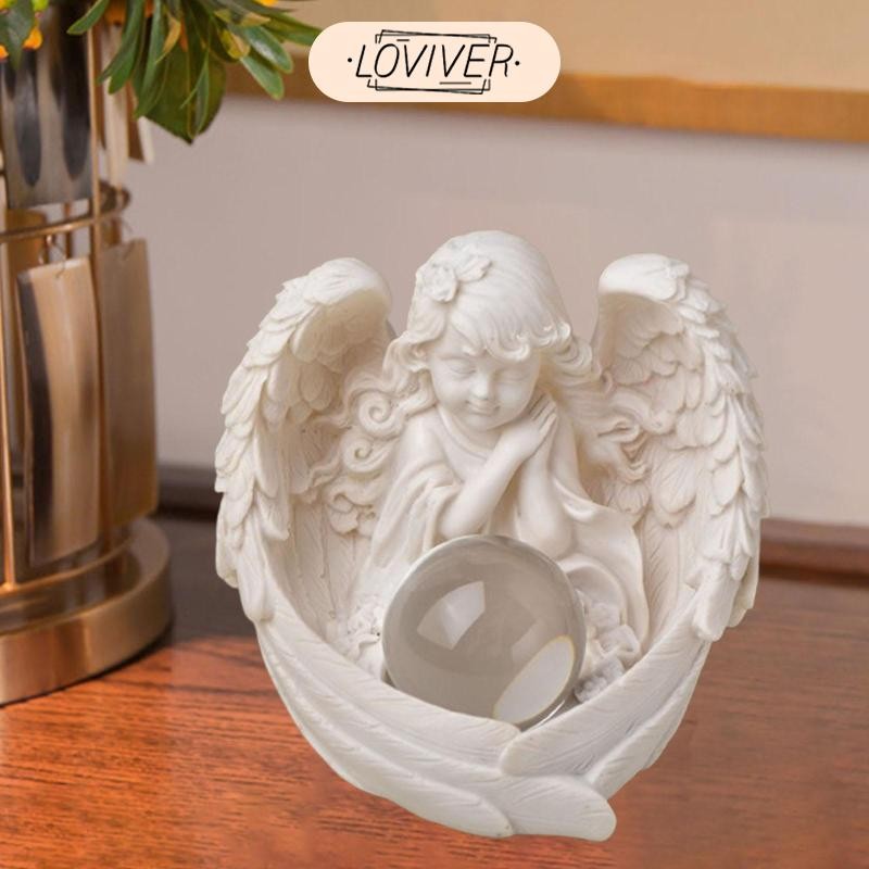 LOVIVER รูปปั้นนางฟ้าน่ารักมินิกลางแกะสลักมือแองเจิลประติมากรรมเรซิ่นแองเจิลหุ่นสําหรับสํานักงานห้อง